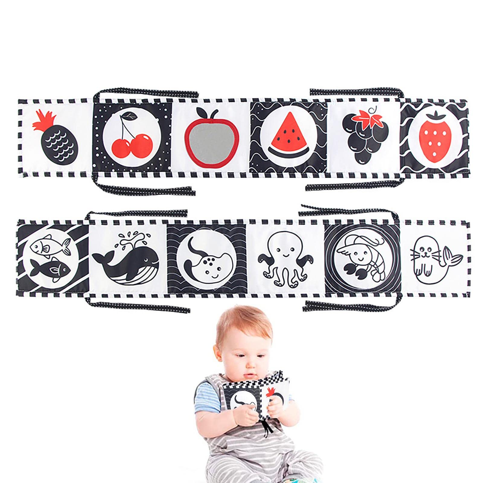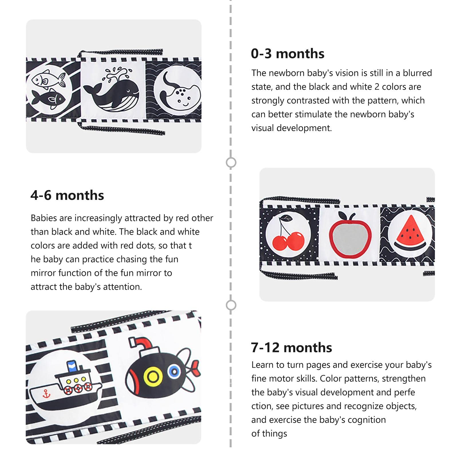 Livre Contrasté Développement Visuel ZERONE Jouets Sensoriels Pour Bébé à Contraste élevé Noir Et Blanc Stimulation Visuelle Nouveau-né Stimulez la vue de votre tout-petit avec notre sélection de jouets contrastés, spécialement conçus pour les nouveaux-nés. Noir, blanc et formes graphiques... Tapis de jeu 4 en 1 pour bébé avec 5 dents de dentition, jouets à * Divertissez vos bébés : ce livre nouveau-né pliable en noir et blanc comprend 12 motifs de dessins animés différents pour les bébés à identifier, et les couleurs à contraste élevé aident au développement visuel précoce du bébé. Nous couvrons quelques articles ménagers courants que vous pouvez utiliser comme jouets sensoriels pour votre bébé - pour impliquer, stimuler et divertir... * Pratique à nettoyer : les livres sensoriels à contraste élevé sont lavables en machine ou en sèche-linge sans se décolorer ni se déformer, ce qui est très facile et pratique à nettoyer. Spécification:Matière : polyesterTaille du produit : environ 82 cm x 13,5 cm/32,28 x 5,31 poucesListe colisage:1 x livre en tissu * Pratiquez la mise au point sur les yeux : notre livre blanc à contraste élevé utilise le principe des post-vision, à travers de simples en noir et blanc à contraste élevé, pour stimuler la vision du bébé et cultiver sa capacité à trouver la cible et à se concentrer sur les yeux. Traits:1., Fabriqué en polyester première qualité, doux, résistant à l'usure et ., 2., Conçu dans des motifs mignons, il encourage les bébés à explorer et bébés des heures plaisir sans fin.