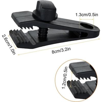 【Large application】 il est largement utilisé dans les tentes, auvents, bâches, caravanes, toiles, couvertures de bateau, auvents, couvertures de piscine, abris de secours ou housses en tissu pour lesquels des points de soutien supplémentaires sont nécessaires. Accessoire Camping Pince Pince Rideau 14 Clips Bâche Résistants - Pour Tentes, Camping Et Bâches Clips Pour Bâche Voiture Pince à Oeillet Réglable Tente HOUSON Lot de 10 clips de tente multifonction pour bâche de tente Il y a un total de 10 clips de bâche, et l'ouverture des engrenages garantit que les clips mordent fermement dans la bâche. Large application] il est largement utilisé dans les tentes, auvents, bâches, caravanes, toiles, couvertures de bateau, auvents, couvertures de piscine, abris de secours ou housses en tissu pour lesquels des points de soutien supplémentaires sont nécessaires Petite taille, facile à transporter, emportez-le avec votre prochaine randonnée ou camping. Accessoire idéal pour tente de camping en plein air, auvent, caravane, etc. 24 Pcs Clip de Tente Bâche avec 12x Pince pour bache et 12x Tendeur... Il est utilisé pour fixer la tente au sol, beaucoup plus stable. Auf der anderen Seite des Planenclip befindet sich ein Loch, um einen Metallknopf oder ein Seil zu befestigen. Large gamme d'applications Les clips multifonctions et les cordons élastiques sont utilisés pour fixer des objets largement utilisés dans les tentes de camping, les auvents, les caravanes, les bâches, les parasols d'extérieur et sont indispensables pour les explorateurs en plein air et les voyageurs. 10 Pcs Tendeur Elastique en Nylon avec 10 Pcs Clip de Tente en ABS Einfacher Schraubenverriegelungsmechanismus, Einfach zu installieren und zu entfernen mit einer Hand ohne Werkzeug. L'autre côté a un trou pour attacher des boutons métalliques ou des cordes.