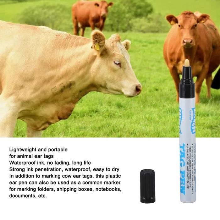 Oreilles Porc Chien Étiquettes D'oreille De Bovin, étiquettes D Cette encre spécialement formulée sèche non seulement rapidement, mais les marques restent visibles et visibles. Marquage Oreille Animaux 100Pcs Étiquette D'Oreille De Bétail Vierge Épaissie Étiquette D'Oreille D'Animal Réutilisable Marquage Permanent Animaux Ferme Important: ce stylo marqueur auriculaire bovin est doté d'une encre hautement perméable qui sèche rapidement, réduisant ainsi le risque de salissures accidentelles. Utilisations polyvalentes : au-delà du marquage des animaux - Bien qu'il soit idéal pour marquer les étiquettes d'oreilles de vache, ce marqueur permanent noir sert également de bel outil pour marquer des dossiers, des boîtes d'expédition, des cahiers, des documents et d'autres surfaces Conçu pour être utilisé sur des boucles en plastique ou en caoutchouc, il assure une identification claire et durable des animaux comme les bovins, les ovins et... Conserve un état propre et bien rangé même après plusieurs utilisations répétées, idéal pour les opérations fréquentes En outre, ses performances de sécurité sont améliorées et son utilisation plus rassurante Avant la première utilisation, il suffit d'appuyer doucement sur la pointe du stylo, à ce que la pointe devienne complètement noire pour commencer à l'utiliser, le mode de fonctionnement simple et pratique permet à tout le monde de monter facilement dans la main Emballage personnel: ce stylo d'étiquette de casque est conçu pour être très petit et léger, facile à transporter et à ranger. Expérience d'écriture fluide: le processus d'écriture de ce stylo à oreille est extrêmement lisse et flexible, il ne se tache pas facilement dans les mains et offre un grand confort à l'utilisateur. Spécification Type d'article: Stylo d'étiquette d'oreille Taille du produit: Environ 14., 5cm / 5., 7in Matériel: Alliage d'aluminium + Plastique + Encre Poids brut: Environ 29g / 1oz Objet: Stylo d'étiquette d'oreille Liste des paquets 1 x stylo d'étiquette d'oreille 1 x pointe de stylo