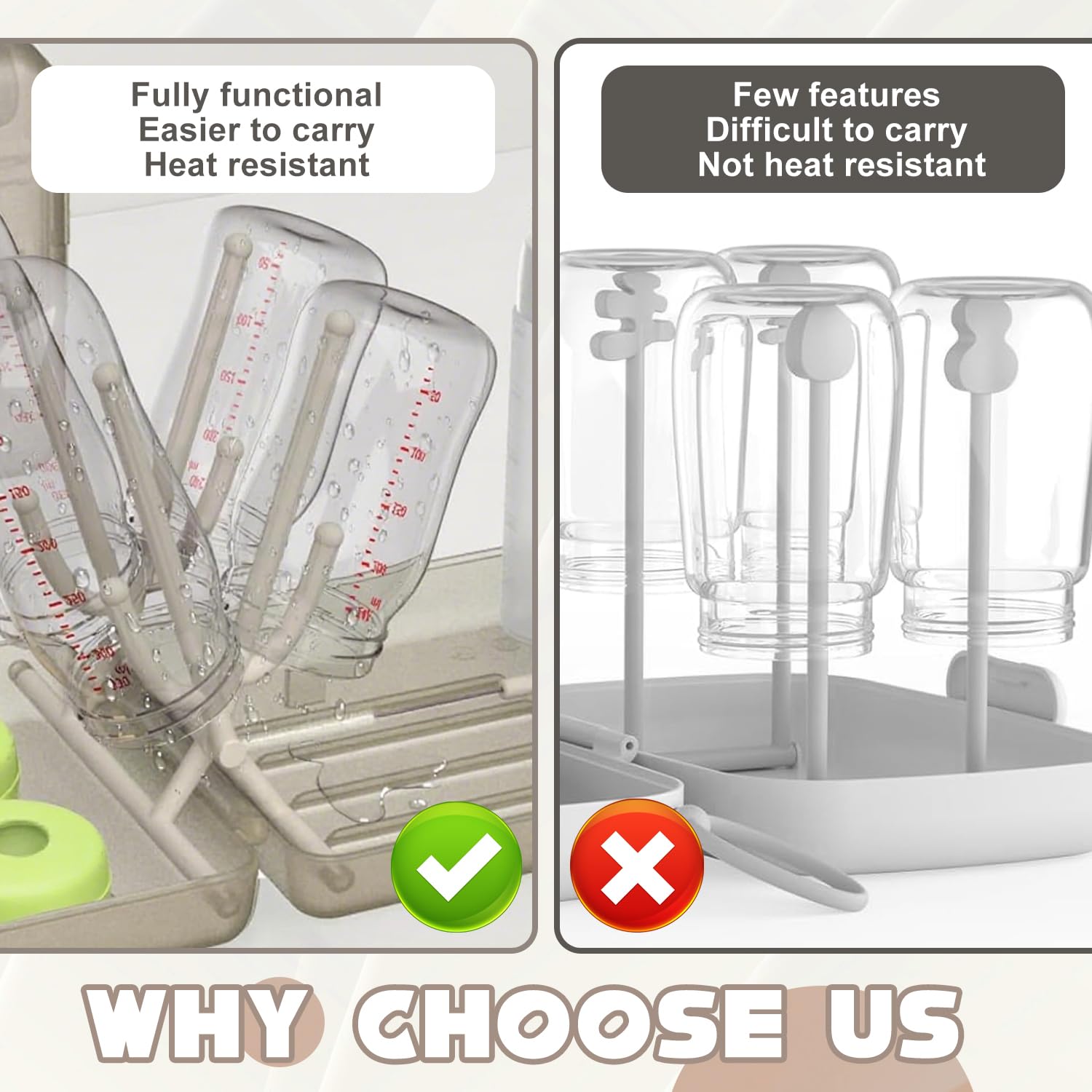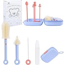 Nettoyage Tétines Pailles KAMHBE Brosse Biberon BéBé 7 En 1 Kit Nettoyage Voyage Goupillon Biberon Silicone Pour Le Nettoyage Des Biberons Et Des Tasses (Vert Distributeur Savon Biberon Pack biberon et tétines (+ brosse à nettoyer Diboniur 7 en 1 Goupillon Biberon Silicone avec Brosse à Tétines, Brosse à Paille, Distributeur de Savon et Égouttoir : : Bébé et PuéricultureRetours & garanties légales: Demandez le retour d'un produit jusqu'à 14 jours après sa réception, sans motif, pour obtenir un remboursement complet (prix et frais de livraison) au titre du droit légal de rétractation... Kit de Goupillon Biberon 7 en 1: Cet ensemble de 7 pièces comprend une brosse biberon bébé, une brosse à tétines, une brosse à pailles, un égouttoir (pour 4 biberons/tétines), un porte-brosse (pour ranger les brosses à la verticale), un distributeur de détergent et un étui de rangement. Un ensemble complet de brosse biberon bébé répond à la plupart des besoins de nettoyage. La brosse à tétine, spécialement conçue pour s'adapter à la courbure de la tétine, nettoie rapidement la tétine de bébé sans recoins, tandis que les mini-brossettes nettoient en profondeur les tétines et les pailles. Diboniur 7 en 1 Goupillon Biberon Silicone, Complet Brosse Biberon Bébé avec Brosse à Tétines, Brosse à Paille, Égouttoir à Biberons, Distributeur de Savon et Égouttoir Nettoyage Doux et Efficace: Fabriqué avec soin, cet ensemble de goupillon biberon est doté de poils en silicone doux, adaptés au contact alimentaire, qui nettoient en profondeur tout en respectant les surfaces. Portable et Sans Dégâts: La boîte de rangement légère et étanche permet de ranger les goupillon biberon et les accessoires lors de vos déplacements. Le Cadeau Attentionné Dont Chaque Jeune Parent a Besoin: Pratique et bien pensé, cet ensemble de goupillon biberon est le cadeau idéal pour une baby shower. Avec un goupillon pour biberon, frottez le biberon dans ses moindres recoins en un temps record ! Composé d’un manche et d’une brosse, le goupillon permet d’accéder facilement au fond du biberon pour retirer les résidus de lait ou de soupe