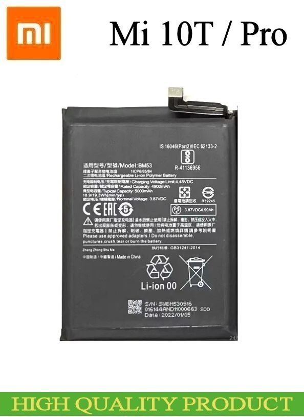 Batterie Interne Xiaomi Mi 10T et 10T Pro Compatible Remplace BM53 Cette batterie de rechange compatible avec XIAOMI BM53 pour MI 10T/MI 10T PRO est idéale pour donner une nouvelle vie à votre smartphone. Il s'agit d'une batterie neuve sans cycle de charge, parfaite pour ceux qui souhaitent remplacer l'unité vide tout en conservant des performances et une autonomie élevées. Légère et compacte, cette... Batterie Neuve 0 Cycle Swark Batterie BM53 Compatible Avec Xiaomi Mi 10T & 10T Pro Avec Outils Batterie Remplacement BM53 5000mAh ✅ Cette batterie de rechange compatible avec XIAOMI BM53 pour MI 10T/MI 10T PRO est idéale pour donner une nouvelle vie à votre smartphone. ✅ Grâce à sa compatibilité certifiée avec les modèles Xiaomi Mi 10T et Mi 10T Pro, il vous permet de prolonger le cycle de vie de l'appareil. Batterie interne compatible Xiaomi Mi 10T et 10T Pro, remplace le modèle BM53. Capacité de 5000mAh pour donner une seconde vie a votre mobile. Batterie de... ✅ Il s'agit d'une batterie neuve sans cycle de charge, parfaite pour ceux qui souhaitent remplacer l'unité vide tout en conservant des performances et une autonomie élevées. ✅ HAUTE CAPACITɠ: Prolonge l'autonomie de la batterie grâce à la grande capacité de 5000 mAh ✅ TESTS DE QUALITɠ: chaque batterie est soumise à des tests rigoureux pour garantir les meilleures performances et la meilleure sécurité ✅ CYCLES DE CHARGE NULS : la batterie est neuve et n'a jamais été utilisée ni chargée avant la vente