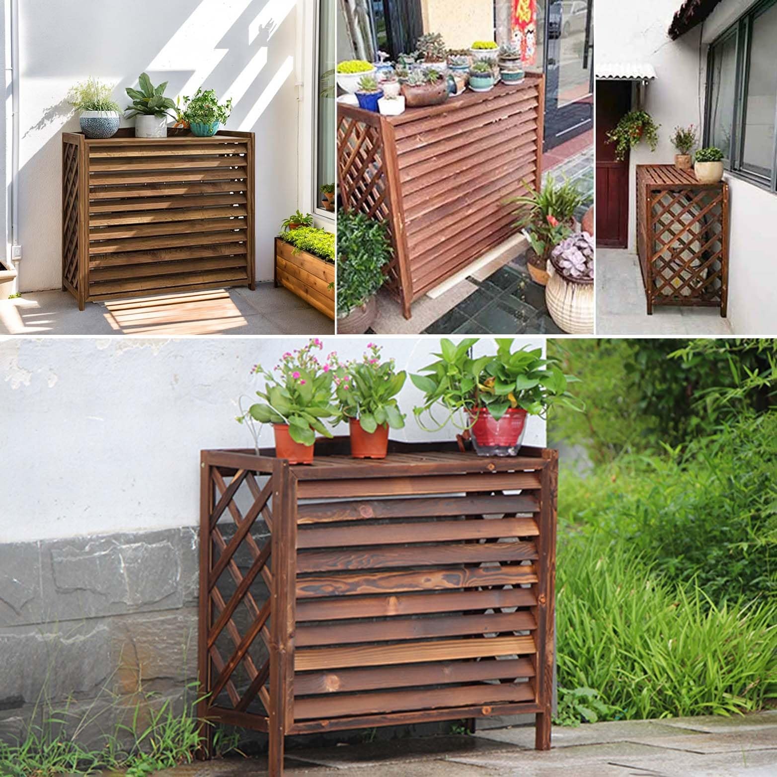 Déco Jardin Cache Pompe à Chaleur Cache Clim DECO BOIS - ® Cache Clim Et Cache Pompe à Chaleur Protection Unité Extérieure Bois Massif Cache Climatiseur : Groupe, Unité, Compresseur extérieur Cache climatiseur en bois exotique : Devis sur - Cache Multi Taille & Installation:Provide quatre tailles pour assurer l'adaptation à divers modèles d'unités extérieures de climatiseurs ou d'autres articles. Excellente protection:Cette cache climatiseur exterieur en bois possède d'excellentes fonctions de protection solaire et de protection contre la pluie... Livré avec des instructions d'installation détaillées et des accessoires pour une installation rapide et facile. Belle pratique:Le grain naturel du bois sur la surface du bois est parfaitement combiné avec le ton brun classique, ajoutant de l'élégance à l'extérieur ou au balcon et créant une atmosphère confortable. Il peut être utilisé pour exposer des fleurs et des plantes, combinant la beauté et la praticité. Protection efficace:Cette cache clim en bois offre une protection complète de l'unité de climatisation extérieure contre le vent, la pluie et la poussière, tout en gardant l'unité propre.