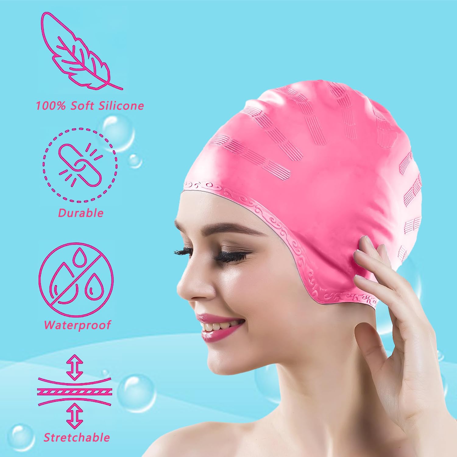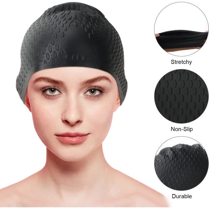 [Matériau durable] : résistant à la déchirure : les bonnets de natation CybGene sont fabriqués en silicone extra résistant qui s'étend jusqu'à plus du double de sa taille d'origine. Le port du bonnet est sûr et confortable, les différentes couleurs vous permettent de choisir votre bonnet de bain professionnel. Bonnet De Bain Cheveux Long BONNET DE BAIN,Violet-XL--Bonnet De Natation En Silicone Extra Large Bonnet Bain étanche Confortable Stabilité] : le bonnet de bain est très facile à mettre et l'intérieur antidérapant lui permet de rester en place lors de la natation. Vous pouvez profiter de votre natation, pas besoin de vous soucier que le bonnet glisse pendant la natation. Voir plus de détails Vous avez des questions à propos des informations du produit en français Avec le bonnet de bain CybGene, vous ne serez pas dérangé par vos longs cheveux sous l’eau. Garder le contrôle de vos cheveux pour qu’ils ne vous dérangent pas lorsque vous nagez tiens est le plus important. Pourquoi devez-vous choisir le bonnet de bain en silicone CybGene ? Les bonnets de bain CybGene sont fabriqués en silicone de haute qualité. [Stabilité] : le bonnet de bain est très facile à mettre et la doublure intérieure antidérapante garantit qu'il reste en place pendant la natation. De plus, la pollution par le chlore dans la piscine ne blesse plus vos cheveux, vous pouvez simplement profiter du pur plaisir de la nage sans les problèmes qui vont avec ! De plus, le fait que le bonnet protège vos cheveux et vos oreilles contre le chlore et les bactéries. Vous pouvez facilement retirer le bonnet de bain, que vos cheveux soient courts, longs, bouclés ou lisses. Les bonnets en silicone sont connus pour tout garder en place, et si vos longs cheveux vous encombrent pendant que vous nagez, vous devriez probablement vous tourner vers un bonnet en silicone. Bonnet de bain à cheveux longs pour filles et garçons, 3 tailles - Bonnet de bain en silicone pour enfants de 1 à 15 ans - Imperméable - Avec bouchons d'oreilles et pince-nez pour garder les cheveux Ils sont testés par des nageurs et des instructeurs professionnels et sont fabriqués à partir de matériaux professionnels. Ils protègent vos cheveux (en particulier les cheveux colorés) de la perte de chaleur, des rayons du soleil, du chlore ou de l'eau salée. Il est également le matériau le plus durable. Bonnet de bain en silicone unisexe pour homme et femme, bonnet de bain
