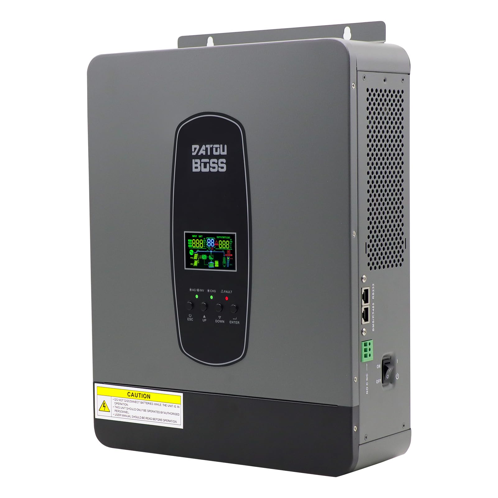 Configurez la priorité du chargeur AC/solaire, plus intuitif et plus facile à utiliser. Inverseur hybride avec ventilateur intelligent, vitesse réglable, refroidissement rapide. Le paquet contient les éléments suivants Onduleur 6200W 48V x1 Manuel d'utilisation en anglais x1 L'onduleur est facile à utiliser grâce aux différentes touches de fonction. Alimentation Solaire Autonome BOYOU Onduleur Hybride Sinusoïdal Pur à Haute Fréquence Hybride 3KVA Onduleur Solaire Sinus Pur Mppt L'onduleur est équipé d'un écran LCD qui affiche les données du système et l'état de fonctionnement en temps réel. Puissance nominale : 6200W, tension en circuit ouvert du réseau PV max: 500V CC, courant de charge maximum (PV): 120A, plage de tension MPPT du réseau PV : 60~500V CC. Les lignes parallèles intégrées et les lignes d'égalisation de courant peuvent surveiller dynamiquement l'équilibre. Il peut alimenter une variété d’appareils tels que des cuisinières, des cuiseurs à riz, des lampes, des téléviseurs, des ventilateurs et d’autres charges. DATOUBOSS Onduleur Hybride Solaire 6200W,48V CC vers 230V CA Vous pouvez y jeter un œil. Pour fonctionner sans batteries, l'onduleur hybride dispose-t-il de batteries ? Non, prendre en charge un fonctionnement sans batterie ne signifie pas que l'onduleur contient une batterie, mais que sans batterie, la production d'énergie photovoltaïque ou le réseau peuvent être directement utilisés pour alimenter la charge. ⚡【Service après-achat parfait】Nous sommes responsables de la qualité des produits et fournissons à cette batterie une garantie de 5 ans et un service client professionnel 24 heures sur 24., Si vous avez des questions liées au produit, n'hésitez pas à nous contacter, nous avons un service après-vente doux et patient. Être configuré en fonction de l'application. Coparatif Onduleur hybride solaire » les 13 eilleurs en 2025 DATOUBOSS 3000W Onduleur Hybride sinusoïdal Pur 24V DC à 230V AC avec... Est-ce que cela prend en charge un fonctionnement sans batterie et peut-il fonctionner sans piles ? Les onduleurs hybrides qui prennent en charge un fonctionnement sans batterie permettent d'utiliser directement la production d'énergie photovoltaïque ou le réseau pour alimenter des charges sans batteries. Si la consommation est supérieure à la production d'énergie solaire, l'appareil émet un avertissement de production photovoltaïque insuffisante et permet l'accès au réseau lorsqu'il est disponible afin d'éviter les coupures de courant. Tant que la consommation est inférieure à la production d'énergie solaire, l'appareil utilise directement l'électricité des panneaux solaires pour alimenter les consommateurs. ⚡【Écran LCD】 L'onduleur hybride solaire 6200W est équipé d'un écran LCD qui peut afficher les données du système et l'état de fonctionnement en temps réel. ⚡【Onde sinusoïdale pure】Cet onduleur hybride solaire adopte une technologie avancée d'onde sinusoïdale pure pour fournir une alimentation CA stable et de haute qualité pour alimenter les appareils et protéger les produits ou équipements électroniques. ⚡【Supporte le fonctionnement sans batterie】Les nouveaux onduleurs hybrides ont un mode de fonctionnement conventionnel avec des batteries, mais peuvent également fonctionner sans batteries en option.
