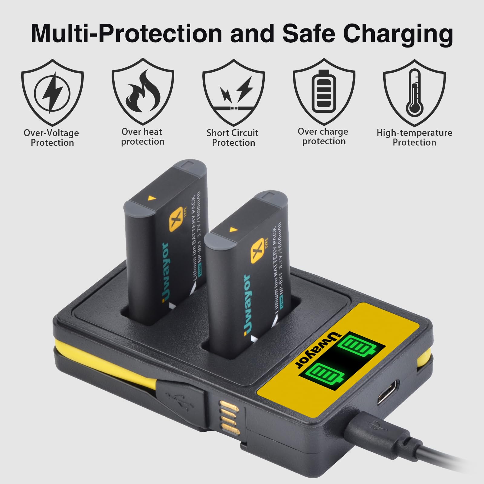 DSTE NP-BX1 Batterie et Voyage Chargeur Compatible pour Sony Batterie 1300mAh Appareil Photo Sony Batterie ENEGON NP-BX1 (Pack De 2 1300mAh) Et Kit De Chargeur LCD Remplacement Batterie Sony ZV-1 RX100 Guide Coplet du Sony Caera DSC RX100 COMPATIBILITÉ : Batteries d'appareil photo universelles compatibles avec une large gamme d'appareils photo numériques, dont : Modèles Sony : ZV-1, ZV-1 II Séries DSC : H400, HX90V, HX95, HX99, HX300, HX400V, RX1, RX1R, RX1RM2 (RX1R II), WX300, WX350, WX500 Séries RX100 : RX100M2/M3/M4/M5/M5A/M6/M7 Caméras sport : FDR-X1000V, FDR-X1000VR, FDR-X3000 Caméras d'action : HDR-AS50, HDR-AS50R, HDR-AS100V, HDR-AS100VR, HDR-AS200V, HDR-AS200VR, HDR-AS300, HDR-AS300R Caméscopes : HDR-CX240, HDR-CX405, HDR-CX440, HDR-GW66V, HDR-GWP88V, HDR-MV1, HDR-PJ270, HDR-PJ275 (Et bien d'autres modèles - en cas de doute, contactez notre service client) ENEGON Batterie NP-BX1 (Pack de 2 1300Ah) et kit de Chargeur LCD... STOCKAGE ET MANUTENTION : Format compact pour un rangement et un transport faciles Marquage de polarité clair pour une installation correcte. OPTIONS DE CHARGE : Compatible avec les chargeurs standards pour batteries d'appareil photo Fonctionne avec les stations de charge dédiées