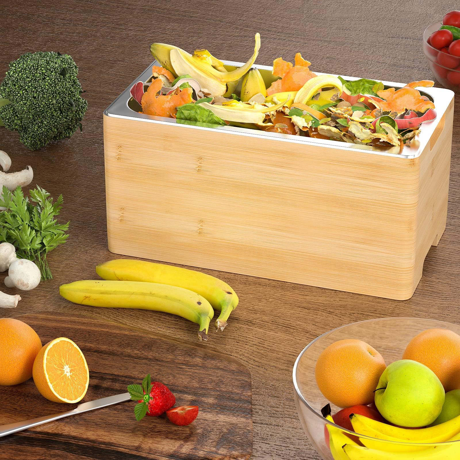 Liste des colis 1 x Bassin de rangement 1 x CouvercleCaractéristiques - Informations produit : Boîte de conservation des résidus alimentaires en acier inoxydable Couvercle anti-odeurs : conçu pour une fermeture hermétique, il empêche les odeurs de s’échapper et préserve la fraîcheur de votre cuisine. Bac à compost de comptoir en acier inoxydable. Bac à compost de cuisine. -Couleur : Argenté, bac à compost de cuisine pour plan de travail - Favorise le compostage : vous aide à trier efficacement vos déchets alimentaires, à promouvoir le compostage et à réduire la quantité de déchets envoyés en décharge. Son design moderne s'intègre parfaitement dans toutes les cuisines, qu'il soit posé sur le plan de travail ou rangé dans un placard. Le couvercle retient efficacement les odeurs, ce qui en fait un excellent choix pour le compostage d'intérieur. Inox Couvercle Anti-odeurs Bac à Compost Bac à Compost De Comptoir De Cuisine, Système De Poubelle Compost Cuisine EKO Bac à compost de cuisine en acier inoxydable de 7 l avec Utilisez-le pour collecter les épluchures de légumes, le de café et autres déchets alimentaires, transformant ainsi votre cuisine en un espace vert et zéro . Composteur de comptoir avec couvercle. Ce bac à compost en acier inoxydable est non seulement fonctionnel, mais aussi esthétique. Ce bac à compost de cuisine a été conçu pour faciliter la collecte des déchets organiques dans votre cuisine. Avec sa capacité généreuse, il peut contenir une grande quantité de déchets alimentaires, de restes de fruits et légumes, de coquilles d’œufs et bien plus encore Informations sur les produits Bac à compost pour la cuisine. petit composteur, composteur en acier inoxydable Bac à compost pour la cuisine. Bac à Compost pour Comptoir de Cuisine ou sous Évier, Petite Poubelle... Solution idéale : en utilisant ce composteur de cuisine, vous contribuez à réduire les déchets mis en décharge et à promouvoir les bonnes pratiques . poubelle de cuisine avec couvercle Conteneurs de rangement en acier inoxydable avec couvercles.