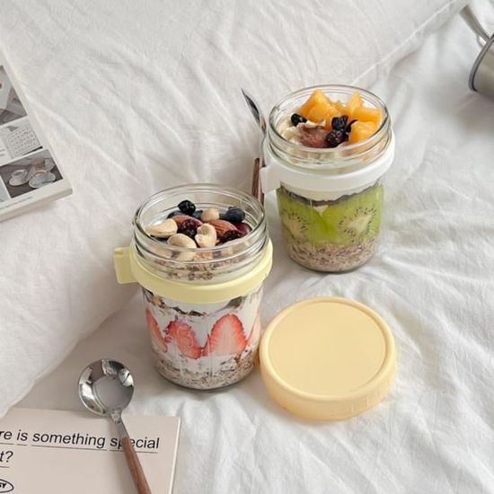 Tupperware Verre Overnight Oats Jar, Pot Overnight Oat Verre, Bocal Avec Bac à Sauce Et Cuillère, Bol Muesli à Emporter Pour Conserver L'Avoine, Le Yaourt, Les Fruits, Le Petit-Déjeuner, 650 Ml, Violet Salade Jar Overnight Oats in a Jar + 6 Awesome Recipes - Salty Lemon Sister Lot de 6 pots de overnight oats jar, pots de en verre, pot de yaourt, verre hermétiques avec couvercles pour conserver l'avoine, le yaourt et les céréales, 350... Cuillère pliable Elle est placée à l'intérieur du couvercle pour éviter tout contact avec l'extérieur. Boîte à sauce intégrée Pas besoin de préparer une boîte à sauce supplémentaire, ce qui évite les fuites. Ne fuit pas même à l'envers Joint en silicone + fermeture à vis, double structure anti-fuites solide et hermétique. Structure indépendante à plusieurs niveaux Les ingrédients secs et liquides sont stockés séparément, ce qui permet de conserver efficacement leur fraîcheur et leur saveur d'origine. Récipient Et Cuillère à Tremper Intégrés : Pot overnight oat verre dispose d'un récipient à tremper amovible et d'une cuillère pliable à l'intérieur du couvercle pour éviter tout contact avec l'extérieur. Le couvercle peut également être utilisé comme un petit bol, ce qui permet de commencer facilement une vie de repas pratique et légère à tout moment et en tout lieu. Pas De Fuite En Cas D'Inversion : le couvercle de bocal salade jar est équipé d'un anneau d'étanchéité en silicone et d'une fermeture à vis, la double structure étanche est fermement fermée, même en cas d'inversion, il n'est pas facile de fuir, de sorte qu'il peut être mis dans votre sac à dos sans aucun stress et sans commettre d'erreur. Les bols muesli à emporter sont fabriqués en verre sélectionné à paroi épaisse sans plomb, sain et sans odeur. Ils sont équipés de joints en silicone de haute...