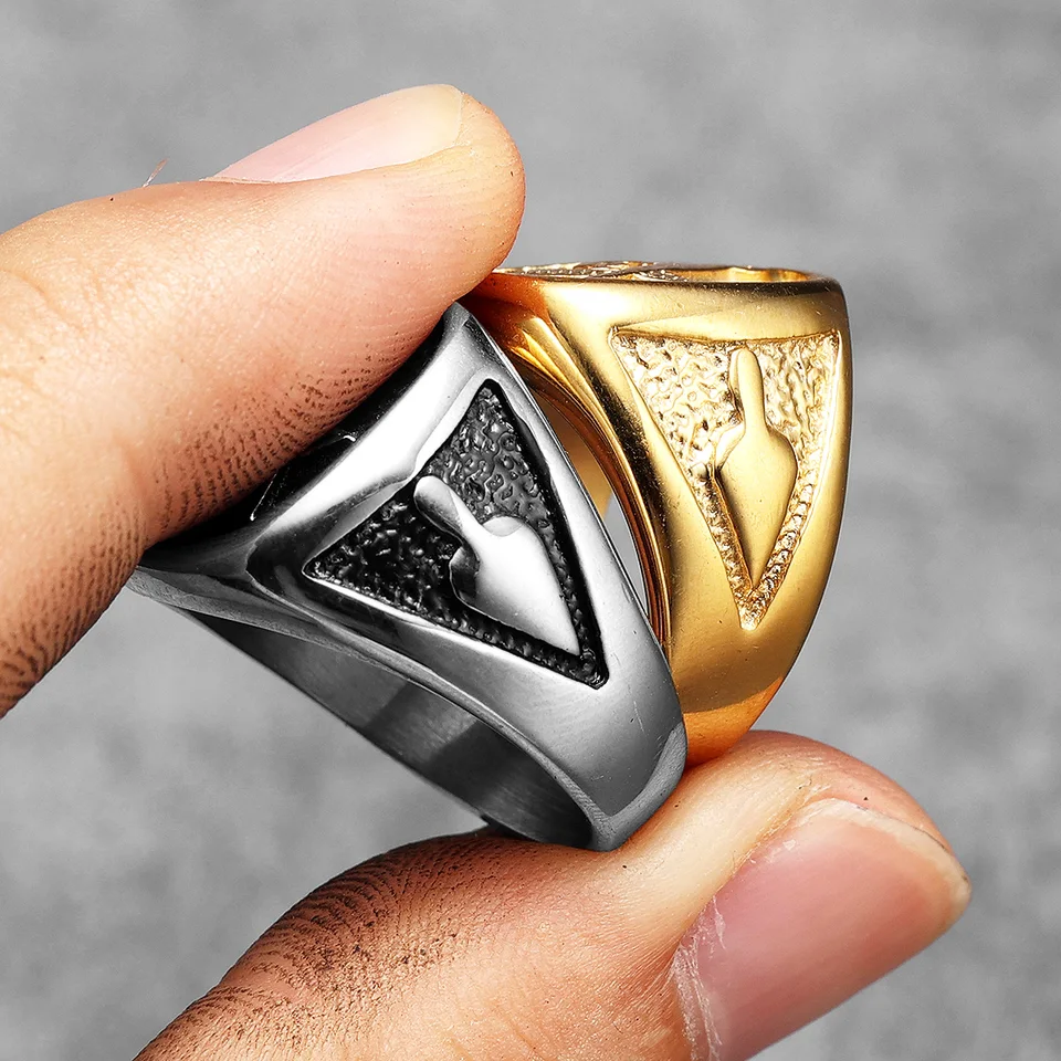 Bague en acier inoxydable pour homme en titane vintage avec logo maçonnique en or ... titane conservation des couleurs plaqué or Agate noir Bague pour hommes... La gravure claire apporte une texture luxueuse, montre votre charme et votre fraîcheur. Mode: populaire auprès des hommes et des femmes, design élégant et minimaliste, facile à porter, facile à assortir avec n'importe quel vêtement, idéal pour toutes les occasions, idéal pour un usage quotidien. Bijou Cadeau Pour Père Ou Mari Bague En Titane Pour Homme - Tanaxos Bijoux Bague Homme Acier Inox Noir Or Design: Cette bague vintage est spécialement conçue pour les hommes. Bagues et Alliances pour Homme, Vente en ligne de bagues homme en Titane. Nouvelle collection d'alliances et bagues, design contemporain, résistant, hypoallergénique.Boccia Titanium, anneaux pour homme pur titane Matériel: fait de matériaux respectueux de l'environnement, durable, résistant aux rayures, faible sensibilité. Bague Symbole Maçonnique Bague Tournante Punk Maçonnique Pour Hommes