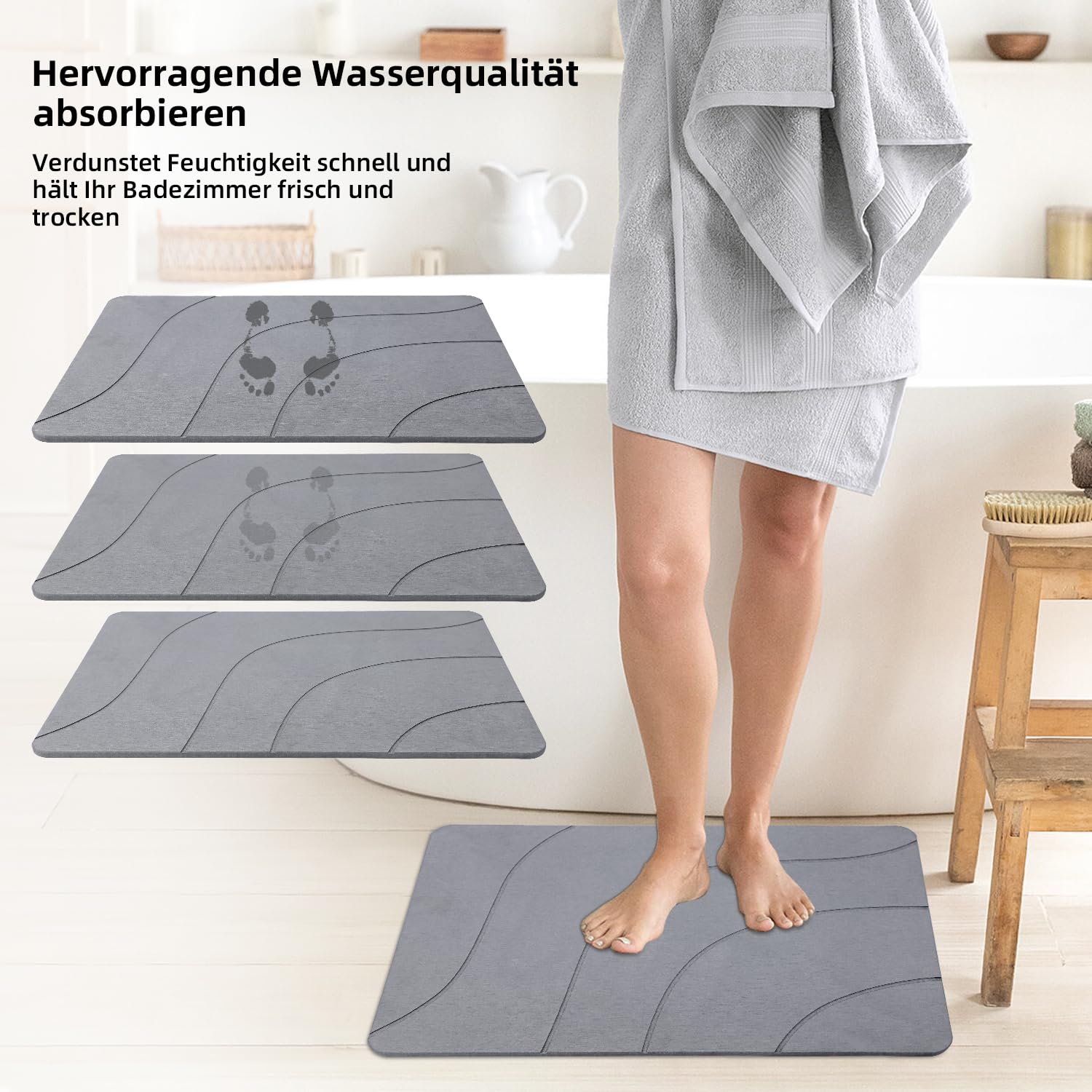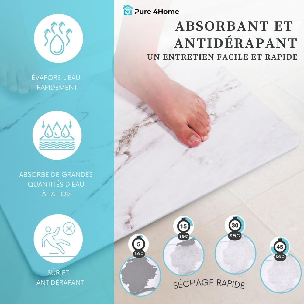 Tapis Salle De Bain Design Tapis De Bain Antidérapant, Absorbant Et à Séchage Rapide En Diatomite Tapis Antidérapant Tapis De Bain Antidérapant 40X60Cm, Tapis Salle De Bain Diatomite... Tapis De Bain Antidérapant 40 X 60 Cm, Tapis Salle De Bain Diatomite Super Absorbant Seche Rapidetapis De Bain Pour Portes De Salle De Bain Salon Lavable Tapis De Bain Gris Violet 92271609 ✅ Durable et écologique –Ce tapis de salle de bain est réutilisable, résistant aux fissures et à l’usure quotidienne. Accessoires salle de bain,tapis de bain en Diatomite, antidérapant... Une alternative durable et respectueuse de l’environnement aux tapis en tissu, qui garantit des années d’utilisation sans perdre son efficacité. Votre Tapis douche sera sec en 1'. ✅Hygiène optimale – La diatomite, matériau naturellement respirant et antibactérien, absorbe l’humidité et empêche le développement de moisissures, de bactéries et de mauvaises odeurs, pour une salle de bain plus saine et toujours fraîche. ✅ Absorption ultra-rapide –Grâce à la pierre de diatomite 100% naturelle, ce tapis de bain antiderapant absorbe l’eau en quelques secondes et reste sec en permanence, évitant les traces humides dans la salle de bain.