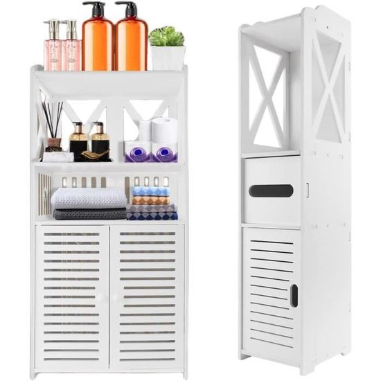 Dimensions de l'emballage : 95 x 29 x 5 cm Poids brut : 4 kg., Poids net : 3,5 kg. Détails : Fond surélevé : le fond surélevé maintient la plaque inférieure loin de l'humidité, garde le sol bien ventilé et empêche la formation de moisissures sur le sol. Coins lisses et arrondis : ils vous donnent une bonne sensation au toucher et empêchent votre main de se gratter lors de l'utilisation quotidienne. Dimensions totales du produit : 28 x 25 x 90 cm. Utilisation : Il convient à différents styles décoratifs de salles de bain et de toilettes à la maison, et il peut également être placé dans la chambre à coucher, le bureau, le salon, la salle à manger, la chambre d'enfant ou d'autres pièces avec des besoins de rangement et d'organisation. Étagère étroite moderne en bois Blanc Oxyde avec quatre étagères 39x41x... Ventilation intelligente : porte avec fentes d'aération pour réguler l'humidité - Empêche la formation de moisissures dans l'armoire à tiroir. Hauteur du niveau supérieur : 31 cm. Description : Cette armoire de salle de bain blanche vous offre un espace de rangement supplémentaire pour garder votre salle de bain et vos toilettes plus ordonnées et organisées. Armoire Pour Petites Pièces Armoire De Salle De Bain - Avec 2 Portes - Rangement Pour Papier Rangement Serviette Commode Étroite Table De Chevet Haute 5 Tiroirs Blanc Gris Moderne Bois... Répartition fonctionnelle : 4 niveaux renforcés (capacité de charge de 2,5 kg/niveau) pour un rangement optimisé des cosmétiques, des serviettes et des produits de nettoyage. 1 manuel de montage en anglais (français non garanti)., Remarques : 1., Veuillez vérifier soigneusement la taille avant de commander., 2., Les mesures étant prises à la main, les tailles indiquées peuvent varier de 1 à 3 cm. Contenu de la livraison : 1 armoire de salle de bain. 【Convivialité】 : montage rapide avec instructions en anglais, facile d'entretien avec un chiffon humide (poids 3,5 kg). Armoires / Armoires De Rangement pour Salle De Bain en Blanc - Maintenant : jusqu'à −45 Idéal comme meuble de salle de bain pour les articles d'hygiène ou comme meuble à tiroir dans les plus petites pièces. Hauteur du niveau inférieur : 30 cm. Hauteur du niveau moyen : 20 cm. Longueur de la plaque supérieure : 29 cm.