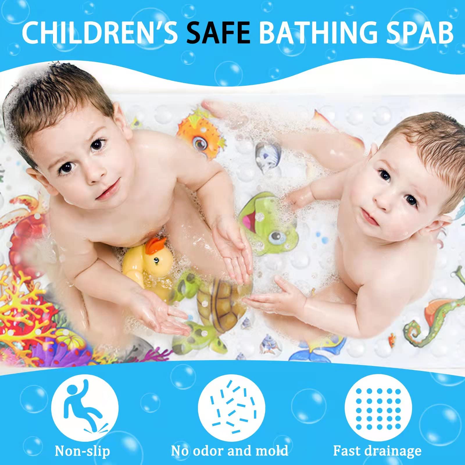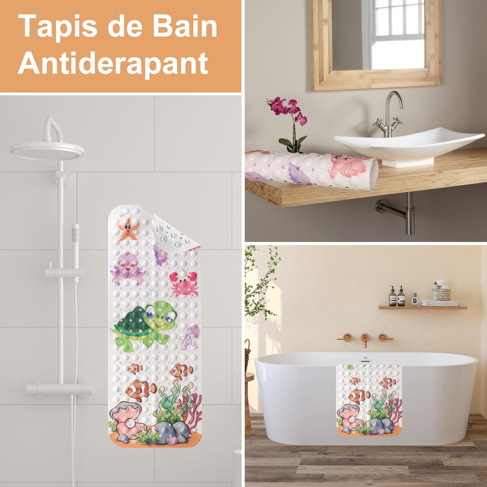 Mothinessto tapis de douche antidérapant Tapis rond en peluche de 40cm... 【Dessin animé】Nos tapis de bain mesurent 100 x 40 cm et s'adaptent à toute la salle de bain. Dessin animé mignon Pattern Design attire l'attention du bébé ou de l'enfant, à partir de maintenant, ils peuvent profiter du bain Tapis De Bain 100x40 Tapis De Bain De Bande Dessinée Pour Enfants, Avec Ventouse Pour Tapis De Baignoire Antidérapant 【Sécurité antidérapante】Ce tapis de bain pour enfants avec 144 ventouses au fond pour se fixer à la baignoire et au sol est extrêmement antidérapant et stable pour plus de sécurité et de confort pour toute la famille. Facile à Nettoyer]Le tapis de douche antidérapant pour enfants est antibactérien, résistant à la moisissure et lavable en machine à 30°. Rincez le tapis antidérapant après le bain, roulez-le et placez-le debout dans la baignoire ou collez-le directement au mur. L'utilisation de produits de nettoyage agressifs n'est pas nécessaire 【Matériel de haute qualité】Notre tapis de bain antidérapant est fait de matériel de PVC de haute qualité, sûr et respectueux de l'environnement, non toxique et sans odeur, sans bpa et sans PHTALATES, ne se déformera pas si facilement, parfait pour les bébés et les enfants à prendre un bain sans soucis. Meitianfacai Tapis de Salle de Bain, Dos en Caoutchouc Antidérapant, Peut Masser Ou Frotter les Plantes des Pieds, Peut Tre Utilisé comme Tapis de Sol de Salle de Bain, Tapis de Douche