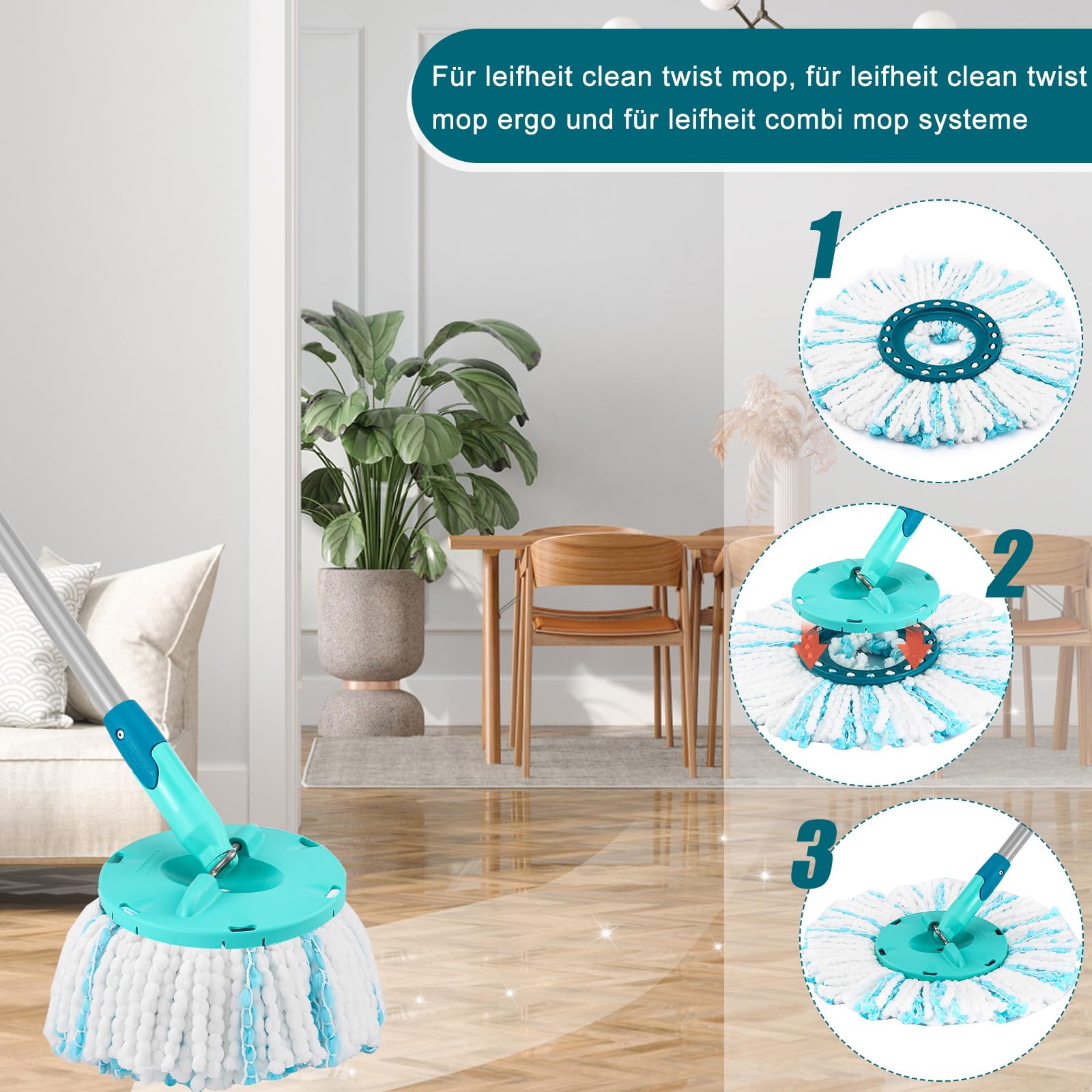 * Pièces de rechange pour balai Leifheit Disc Mop - Tête de rechange pour balai à poussière Leifheit - 3 têtes de rechange pour balai à franges Leifheit - Tête de rechange pour balai à franges Clean Twist Disc Mop Ergo Housse de rechange pratique pour Leifheit : lot de 3 serpillères Leifheit, compatibles avec tous les serpillères Clean Twist Mop pour Leifheit, Clean Twist Mop pour Leifheit Ergo et Combi Mop pour Leifheit. Serpillère de rechange Leifheit en microfibre haute densité, texture douce, n'endommage pas le sol, nettoyage en vert de la surface du sol, sans laisser de traces, offre un effet de sol parfait. Lavable plusieurs fois : la serpillère Leifheit est facile à remplacer et est lavable en machine à 60 °C, sans perdre sa puissance de nettoyage même après de nombreux lavages. Clean Kicks Sac HENGBIRD Têtes Rechange Balai Leifheit - Lot De 3 Facile à installer : la housse de rechange pour balai Leifheit est facile à changer en montant sur les franges et en tirant sur le manche. Utilisation polyvalente : que ce soit dans la cuisine, la chambre à coucher ou la salle de bain, la housse de rechange pour Leifheit est idéale pour tous les sols lisses. Balai Serpillère]❤️Note : Le produit contient 3 têtes de balai de remplacement en microfibres, à l'exclusion du seau à balai, du manche à balai et de la... Housse de balai Leifheit pour une performance de nettoyage constante, nous vous recommandons de remplacer la tête de balai tous les 6 mois. Compatible avec les systèmes Clean Twist Mop pour Leifheit, Clean Twist Mop Ergo et Combi Mop Balai de sol Leifheit - Design compact et délicat - Peut nettoyer de manière flexible tous les bords du sol - Super absorbant et absorbant la saleté - Répond pleinement à vos besoins de nettoyage. Le balai à disques Twist Clean pour Leifheit peut être nettoyé à des températures inférieures à 60 °C et est lavable en machine. Seau Serpillere Essoreur Lot De 3 Têtes De Balai De Rechange Leifheit Clean Twist Disc Mop En Microfibre Hautement Absorbante~p148140029 Compatible Clean Twist Disc Mop Ergo Tête de vadrouille de remplacement ]Utilisant des microfibres de haute qualité, une fonction de nettoyage puissante, sans ajout d'additifs chimiques, elle peut éliminer des taches sur le sol, gardant votre maison propre et nette Design compact et sensible, peut nettoyer de manière flexible tous les bords du sol, avec une absorption super absorbante et absorbant la saleté, répond pleinement à vos besoins de nettoyage et facile à nettoyer.