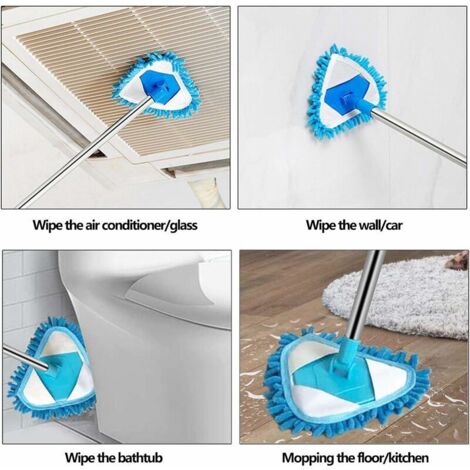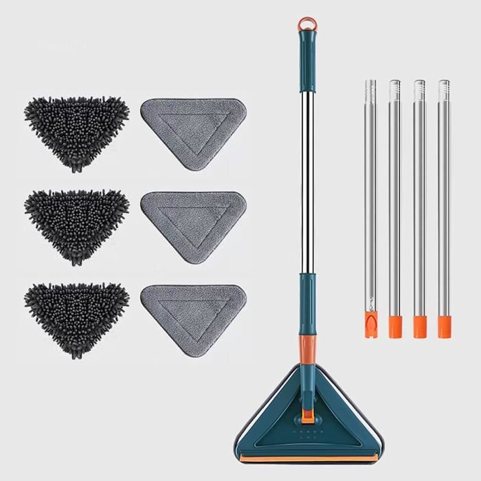 Le balai doux et flexible ne rayera pas vos meubles, sols et fenêtres. EIMELI Balai Rotatif Réglable à 360° 51 Pieds' Extensible Triangle Contenu : 1 tête de balai triangulaire 5 tiges d'extension en acier inoxydable 1 poignée d'extrémité 1 essuie-glace 3 serpillères réutilisables en microfibre 3 serpillères chenille Accessoire Nettoyage Maison Pratique Balai Triangulaire Multifonctionnel Balai Triangulaire Rotatif 360° Réglable Balai De Nettoyage Mural Extensible Avec Long Manche Balai Ménager Pour Plafond Fenêtre Sol Nettoyage Ménager Balai Télescopique Nettoyage Sol Il est possible de nettoyer les endroits hauts posés sur le sol sans avoir besoin d'une échelle. Notre balai à poussière rendra le nettoyage plus facile. Balai de Nettoyage Triangulaire Rotatif à 360 degrés, réglable, Outil... [Utilisation sèche et humide] Le colis comprend 3 serpillères chenille et 1 essuie-glace qui sont adaptés pour le nettoyage humide des fenêtres et des sols, et 3 serpillères en microfibre qui sont adaptées pour le nettoyage à sec. Facile à assembler Notre balai de nettoyage mural est assez facile à assembler. Serpillère triangulaire rotative à 360° : La serpillère de nettoyage avec une tête triangulaire rotative à 360° nettoie facilement tous les coins, même les impasses et les endroits profonds. La serpillère réglable rend votre travail de nettoyage plus pratique et améliore votre efficacité au travail Balai chenille absorbant l'eau Les tampons absorbants Suoer chenille et la combinaison de bandes d'essuie-glace en caoutchouc sont plus adaptés pour le nettoyage des fenêtres, le nettoyage du sol et d'autres nettoyages humides. Vous n'aurez pas à vous soucier de se détacher ou de flotter pendant le nettoyage, le joint flexible peut être stable après que vous passez à un certain point selon vos efforts. Vous avez juste besoin de fixer le manche à la tête de balai sans aucun autre outil, simple et pratique. Notre balai de nettoyage mural avec long manche peut vous aider à nettoyer les fenêtres, les sols, les coins des murs et d'autres zones avec facilité. [Longueur de la réglable] Le balai de nettoyage mural est livré avec 5 tiges d'extension en acier inoxydable, avec une longueur réglable de 63,5 cm à 215,9 cm, et vous pouvez l'assembler à la bonne longueur selon les besoins réels.