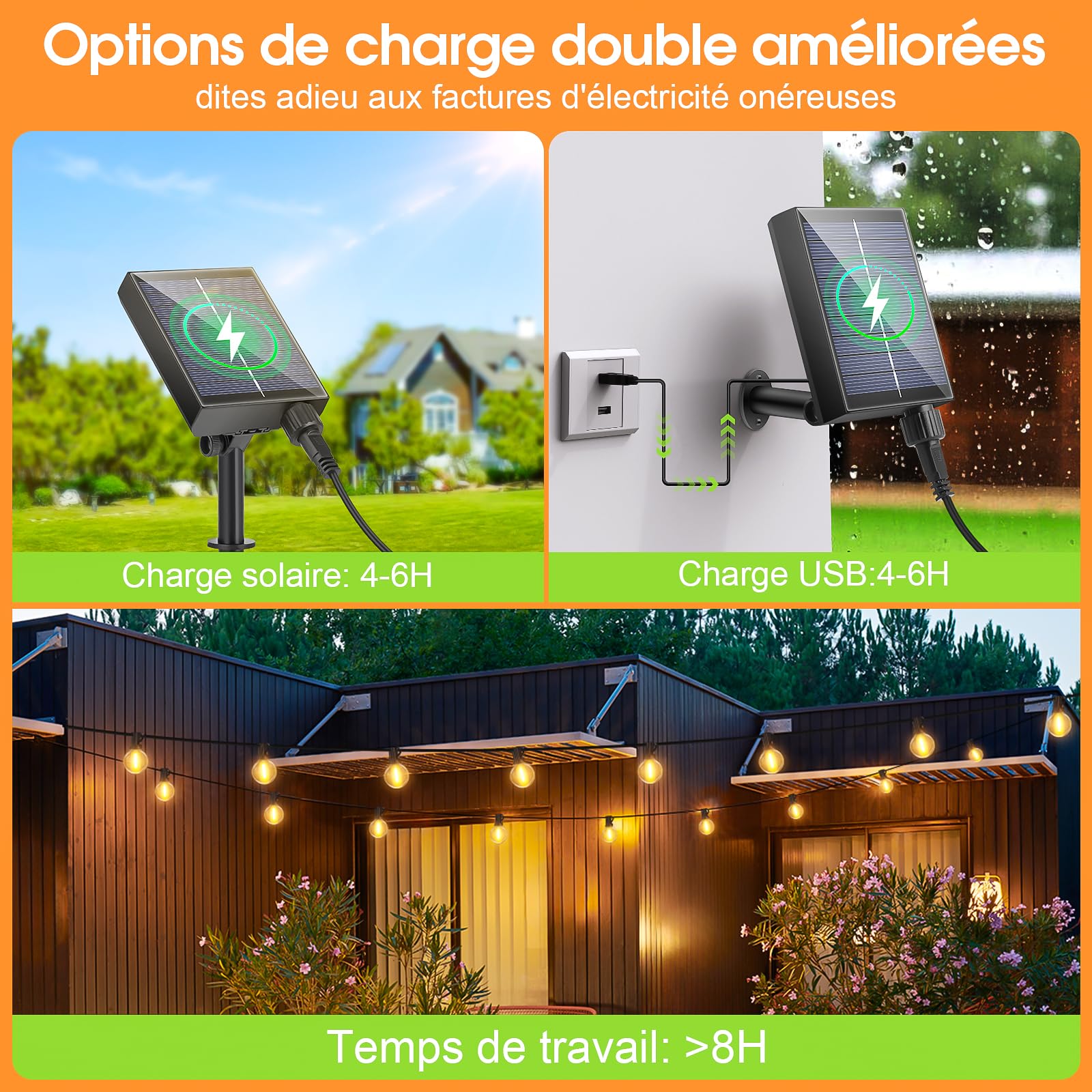 🌟 Installation Simplissime & Polyvalence: Aucun outil requis pour façonner vos guirlandes lumineuses d'extérieur et intérieur. Guirlande Pâquerette 8 Modes IP44 Tuokay Guirlande Solaire Extérieure Avec Ballon, 6,5M 30 LED Guirlande Lumineuse Solaire Etanche Guirlande Led Solaire Extérieur Peut créer un excellent éclairage et une atmosphère chaleureuse , Créez suffisamment de romance pour vous, vous apportez une atmosphère festive. Ampoules LED en Plastique: Toutes les ampoules de guirlandes utilisent des ampoules en plastique améliorées au lieu des ampoules en verre traditionnelles 🌟 8 modes clignotants: Cette guirlande lumineuse solaire est équipée de 8 modes de flash différents. Il crée une atmosphère romantique, douce et chaleureuse en toute occasion. 30 LED Guirlande Solaire Exterieur, 6.5 Mètres lampions Chaîne Solaire... Il peut être complètement chargé en 6 heures et la lumière peut briller pendant 6 à 8 heures la nuit. Parfait pour les fêtes, les clôtures, les cadres de balançoires de hangar, les conduits de climatisation, les conduites d'eau, les cadres de portes, les décorations d'escaliers et plus encore. 🌟 Étanchéité IP44: Que ce soit à l'intérieur ou à l'extérieur, grâce à la conception étanche IP44, les lampes solaires résistent bien aux conditions météorologiques difficiles telles que la pluie, la neige et le vent et vous pouvez facilement installer les lampes à l'extérieur. Guirlande lumineuse exterieur solaire pas cher au meilleur prix | Leroy Merlin 🌟 Temps d'éclairage durable: Grâce à la technologie avancée des cellules solaires, il peut être chargé même en hiver ou par temps pluvieux et assure ainsi une conversion d'énergie de plus de 20 %. Ne vous inquiétez pas des courts-circuits ou des dommages causés par les intempéries, il peut être utilisé en été comme en hiver.