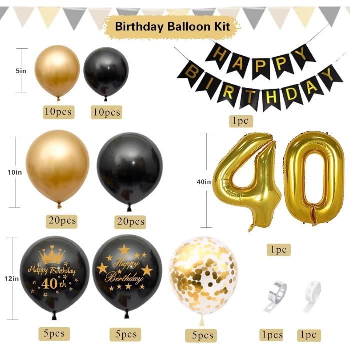 Anniversaire Décoration Party Pack 4 Pièces 40 Ans Nos ballons en aluminium pour 40e anniversaire arborent des chiffres 40 audacieux et des motifs confettis, ajoutant une touche à la fois ludique et élégante à votre décoration Deco 40 Ans Homme Ballon Pour 40 Ans Fille 15 Ballons 40e Anniversaire Or & Noir - Déco Fête Homme, Latex Helium Ballons Latex Deco Anniversaire 18 Ans Le remplissage à l'hélium les fait flotter et vous pouvez les gonfler avec la bouche ou un gonfleur. 【Conseil】Notez que les couleurs des ballons peuvent varier en fonction des conditions d'éclairage. Avec son design noir et or, cet ensemble est parfait pour les anniversaires de 40 ans, qu'il s'agisse d'un homme ou d'une femme. Le thème universel s'adapte à... Le ballon à paillettes a besoin de plus de statique pour que les confettis adhèrent le mieux aux côtés des ballons et suggère de les frotter sur un tapis ou des cheveux après le gonflage. Pour éviter l'éclatement, un gonflage à 80% ou 90% est suffisant. N'hésitez pas à nous contacter si vous avez des questions. Stockez et utilisez les ballons de préférence dans des endroits ombragés.