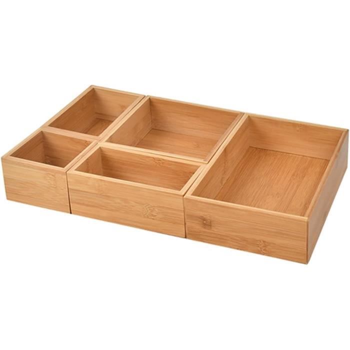 [Pack de 2 pour rangement de cuisine] : Ce set de boîtes de rangement en bambou est parfait pour ceux qui ont besoin d'organiser et de stocker divers ustensiles de cuisine. Fabriqué en bambou 100% naturel, sans odeur ni produits chimiques, idéal pour un usage domestique en remplacement des organisateurs de couverts en plastique ou en acier inoxydable. Spécifications : Type : Set de 2 organisateurs de cuisine carrés en bambou Le set de 2 boîtes de rangement en bois convient parfaitement aux personnes needing d'organiser et de ranger divers couverts et ustensiles de cuisine. Couleur : Ton bois naturel, Matériau : Bambou Un Dessin De Fourchettes Et De Couteaux Avec Un Fond De Couleur Jaune... [Design naturel et épuré] : Fabriqué à partir de bambou Moso sélectionné, ce produit conserve la texture et la couleur naturelle du bambou, dégageant une simplicité rustique. Pourquoi choisir l'Organisateur de Cuisine en Bambou SenaiMy ? Fabriqué en bambou intégral, robuste et durable, sans odeur intrinsèque ni substances nocives. Ce pack combiné comprend : Un organisateur pour le rangement quotidien d'ustensiles de cuisine tels que petits couteaux, ciseaux et spatules. Rangement Cuisine Ustensiles Organisateur De Tiroir En Bambou Pour Ustensiles On Ustensiles Cuisine Ensemble de Cuillères - Spatules en Bambou, 4 Pièces avec Support de... Idéale pour un stockage uniforme des couverts lors de fêtes ou de repas en groupe, facilitant le rangement après l'événement [Matériau en bambou naturel] : L'organisateur de couverts SenaiMy est fabriqué à partir de bambou naturel de haute qualité, sans odeur ni substances nocives. Évite le mélange des ustensiles tout en garantissant un accès facile aux objets Résiste à la fissuration et à la déformation même après un stockage prolongé des couverts. Bloc à Couteaux à 2 Niveaux En Bambou - Toute l'offre ustensile de Garantit la sécurité des couverts lors du stockage quotidien, surtout pour ceux en contact direct avec les aliments comme les couteaux, fourchettes et cuillères, Accessoire de cuisine indispensable Type d'installation : Aucun assemblage requis Emballage : Dimensions du colis : 22 x 25 x 10 cm Dimensions : 9 x 9 x 15 cm (ouverture de 7,2 cm)