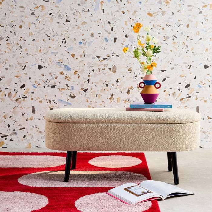 Petit coffre de rangement Banc Entrée Chambre Design Banc, Bout De Lit, Bouclette Texturée, Beige Meuble Entrée Pratique Description du produit Les + produit Tout doux Pieds en bois noir mat Structure en bois de pin et contreplaqué Petit coffre de rangement Découvrez notre banc Sherpa, un design unique et moderne qui sublimera votre intérieur. Les produitTout douxPieds en bois noir matStructure en bois de pin et contreplaquéPetit coffre de rangement Découvrez notre banc Sherpa, un design unique et moderne qui sublimera votre intérieur. Son revêtement tout en douceur s'associe à des pieds en bois noir. L'ensemble lui donne un look épuré En savoir Vendu par Sweeek Couleur Beige Taille 112 cm Livraison dès 6/7 jours... Un banc qui allie l'utile à l'agréable ! Ne surchargez pas le coffre de rangement pour maintenir la stabilité de l'ottoman. sweeek | Banc bout de lit avec revêtement bouclette texturée kaki pieds... Pratique, son petit coffre de rangement vous permet de ranger des petits coussins ou des couvertures. Son revêtement tout en douceur s'associe à des pieds en bois noir. Pieds en bois noir mat Banc coffre en tissu bouclette matcha Il peut aussi être utilisé comme assise supplémentaire dans un salon par exemple. Structure en bois de pin et contreplaqué