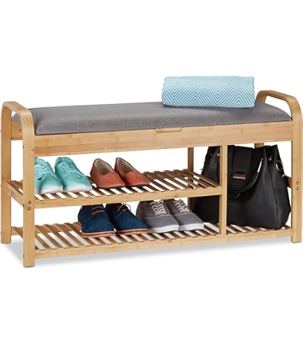 Compartiment intérieur 2 H x l x P : environ environ 22 x 75 x 10,5 cm Meuble Entree Couloir Relaxdays Banc à Chaussures En Bambou Avec 2 Compartiments Banc Rangement Chaussures Bambou Couloir Entrée Design Confortable : banc pour que vous soyez confortablement assis lorsque vous enlevez vos chaussures Bascule intégrée avec 2 compartiments pour un rangement ordonné Fonction 2 en 1 comme organisateur de chaussures et banc rembourré Durable : meuble à chaussures robuste - Charge maximale : 80 kg - Facile d'entretien Relaxdays Armoire à pharmacie, 3 compartiments pratiques, mélange de matériaux, H x L x P : 45 x Dimensions totales (H x l x P) : environ environ 49 x 80 x 30 cm Charge maximale : environ environ 80 kg , Poids approximatif : 8,7 kilogrammes Compartiment intérieur 1 H x l x P : environ environ 34 x 75 x 11,5 cm Design élégant et intemporel pour le couloir et le couloir Chic : banc à chaussures - Pour l'entrée ou le couloir - Dimensions H x L x P : env., 49 x 80 x 30 cm Relaxdays Caisse à monnaie, pratique, combinaison à 3 chiffres, en fer... Banc de rangement spacieux, bois, coussin en lin, H x L x P : 46,5 x 92... Le design en bambou naturel du banc donne à votre entrée une touche chaleureuse et moderne et s'adapte parfaitement à de nombreux styles d'intérieur. Dimensions du coussin (H x l x P) : environ environ 3,5 x 75,5 x 28 cm Couleur : noir Naturel, gris Banc à chaussures en bambou rembourré Avec ce banc à chaussures, vous apportez de l'ordre et du style dans votre couloir.