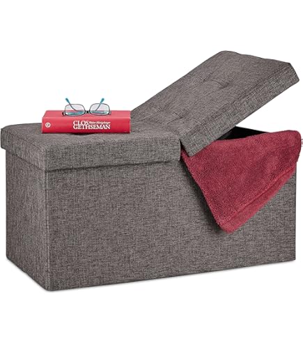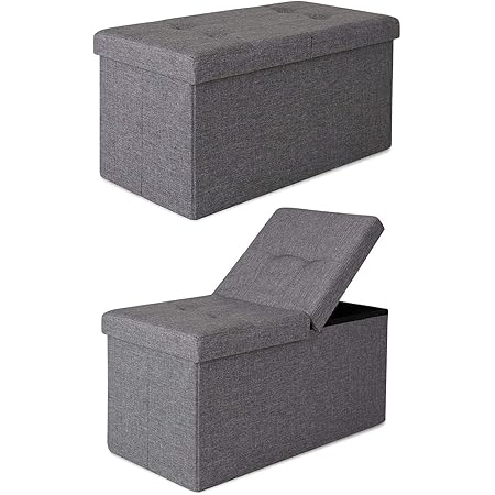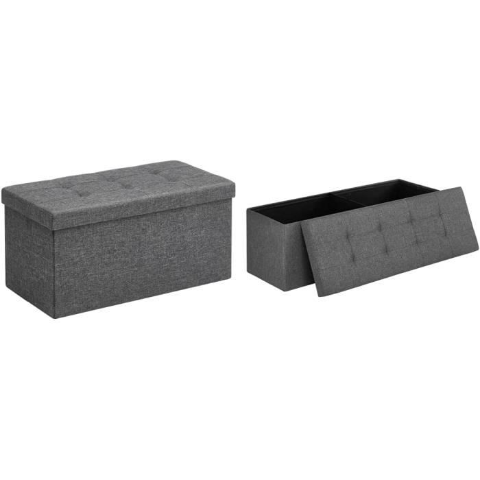 Meuble Gain De Place Pouf Coffre De Rangement Banc Tabouret Pliable Tissu Gris Foncé Pouf Rangement Housse en lin, aspect élégant, compatible avec de nombreux meubles. Peu encombrant avec espace de rangement - assise pratique ou boîte de rangement (jouets, magazines, CDs/DVD, livres, vêtements, etc.), comme table de chevet, banc de pied ou décoration devant le lit Banc de rangement pliable Faux lin 76 x 38 x 38 cm Gris fonc Peu encombrant avec espace de rangement - assise pratique ou boîte de rangement (jouets, magazines, CDs/DVD, livres, vêtements, etc. Tabouret Banc Pliable Couvercle À Charnière Coffre De Rangement Avec... ), comme table de chevet, banc de pied ou décoration devant le lit. Structure solide en panneaux MDF (conforme à la norme E1). Rembourrage extra épais (mousse compacte haute densité) pour un confort d'assise optimal 80 litres), housse en lin