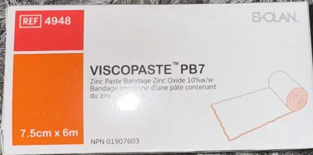 VISCOPASTE® PB7 Bandage à la colle de zinc 7,5 x 6 cm 1 pc(s) - Redcare... VISCOPASTE PB7 est une bande tissée à la structure aérée imprégnée d'une pâte contenant de l'oxyde de zinc, BP à 10 % enroulée autour d'un support en matière plastique How To Apply Viscopaste Legs Bandage à Pâte De Zinc Viscopaste® PB7 Bandage Viscopaste Pb7 Bandage tissé à structure aérée