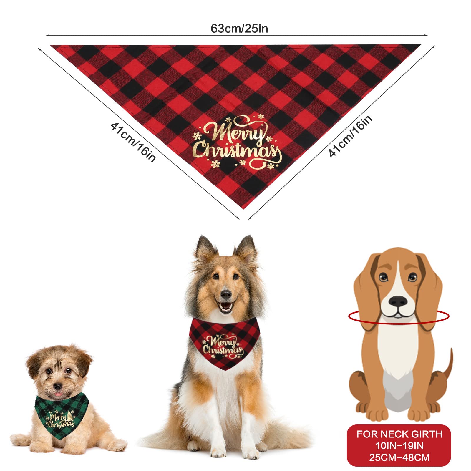 Bandana Chien Coton Cadeau GOYOSWA Lot De 2 Bandanas De Noël Pour Chiens De Grande Taille, Bandana à Carreaux De Buffle Bandana Noël Pour Chien Lot 3 Achetez en gros En Gros Multi Couleurs ersonnaliser Imression Coton et Chien Chat Serviette Bandanas de Noël pour Chien, 2 Pcs Écharpe pour Aniaux de Copagnie Tenues à Carreaux Père Noël... Doux et agréable pour la peau, respirant à porter. Design classique à carreaux : plaid classique et élégant avec motif Merry Christmas, style unique, leur permet d'être classique et jamais démodé. Convient aux filles et aux garçons, ce qui rend votre animal de compagnie à la mode et attrayant. Lavable et ne se décolore pas facilement. Taille pratique : Le bandana à carreaux triangulaires est de 63*43*43 cm adapté à la plupart des cou de chiens et de chats, peut être appliqué pour éviter la saleté inutile, aide à garder le cou de votre animal propre, peut rendre vos animaux à la mode dans le jardin ou dans les rues, veuillez mesurer la circonférence du cou de votre chien et laisser de la place pour l'attacher. Les couleurs vives et le design joyeux garantissent que votre animal de compagnie aura toujours fière allure lors d'une promenade dans le parc ou lors d'une photo de famille en vacances. Cadeau de Noël parfait : votre meilleure amie devrait faire partie des vacances de Noël et elle a besoin de quelque chose à porter. Accessoires pour animaux de compagnie de Noël, Ils font d'excellents ornements de fête pour rendre votre animal de compagnie unique et accrocheur à Noël. 🐶[Taille du bandana]bandanas pour chiens, adapté à la plupart des chiens de taille moyenne et grande