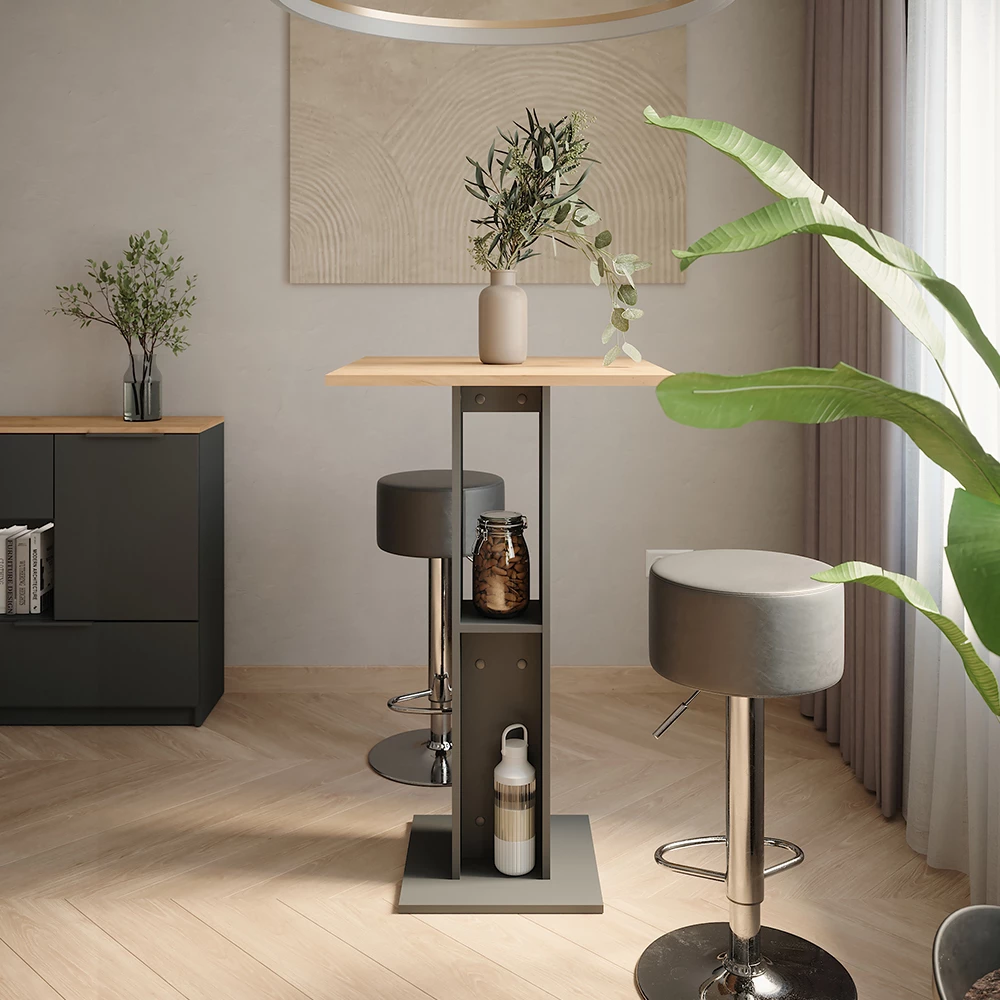 La table de bistrot pour la cuisine Repose est une bonne décision pour ajouter une touche élégante à votre maison. Choisissez parmi les options de la série « Repose » et créez un espace attrayant et confortable pour manger et se détendre. Table Bistrot Design Chêne Vicco Table De Bar, Chêne Doréanthracite, 65x65cm Meuble Salle à Manger Repose La table de bar « Repose » est un meuble polyvalent qui donne à n'importe quelle pièce un aspect élégant. Que ce soit comme table de bar dans la cuisine, comme... Avertissement De Sûreté Important! Description du produit La table de bar Repose est la pièce maîtresse pour des soirées conviviales dans votre maison. Avec diverses combinaisons de couleurs et options d'unités personnalisées et des améliorations supplémentaires, la série vous offre une variété d'options de conception pour votre salle à manger. LIVRAISON : Table de bar, instructions de montage, matériel de montage A conserver pour une consultation ultérieure., Lire attentivement !, DANGER DE BASCULEMENT ! Elle vous permettra de vous réunir avec vos proches autour d'un verre de vin ou d'un délicieux snack et de vivre des moments inoubliables. Son design optimale s'adapte à tous les styles de décoration. --- Données techniques: Couleur:Chêne doré/anthraciteDimensions:65 x 106 x 65 cm (LxHxP)Matériau:Panneau de particules, 16 mmSurface:Revêtement en mélaminePoids net sans emballage:25 kgPoids brut avec emballage:27 kg--- LIVRAISON : Table de bar, instructions de montage, matériel de montage--- La série de meubles « Repose » comprend une sélection de meubles de salle à manger. Transformez votre espace de vie en un véritable coin bar convivial avecset de table de bar Repose. Composé d'une table haute avec tabouret assorti,set apportera une touche moderne et élégante à votre intérieur Pour éviter que ce meuble ne bascule, il faut qu'il soit ancré au mur. Il offre suffisamment de place pour s'asseoir et propose un espace de rangement pour les verres et les bouteilles. Laissez-vous séduire par la polyvalence et l'élégance de la table de bar Repose et créez un lieu de convivialité dans votre intérieur. Vicco Îlot de cuisine Anthracite Campagne/Chêne doré 90cm avec tiroir, sans PT, Fame-Line