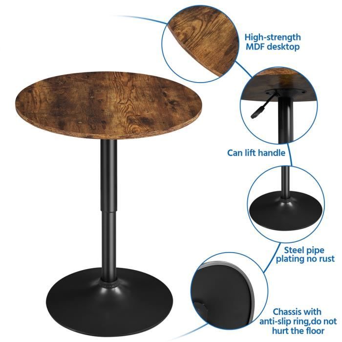 Le plateau épais de 2,8 cm est durable et sa finition mate protège des éclaboussures, ce qui en fait un choix idéal pour les bars ou salles à manger à forte fréquentation. Bois Métal Set Table Bar Ronde Et 2 Tabourets - Style Industriel Son design polyvalent s'adapte à tous les environnements, agrémentant repas et réceptions. Table Bar 96cm Avec Repose-pieds MSFE Table Ronde De Bar Haute Avec 2 Chaises,Table De Bar En Table Haute Avec Repose-pieds 【Structure robuste et stable】Fabriquée avec un plateau en bois marron durable et un cadre en métal rond noir avec un repose-pieds, cette table de pub bistrot allie charme rustique et résistance industrielle pour une utilisation durable. Son plateau rond permet de gagner de la place au sol tout en offrant suffisamment d'espace pour les boissons, les repas ou les en-cas, idéal pour les appartements, les balcons ou les cafés conviviaux. Chaise à bascule avec tabouret, chaise inclinable avec repose-pieds... N'hésitez pas à nous contacter pour toute question concernant cet ensemble table et chaises de bistrot rondes. Il complète la structure de la table, assurant stabilité et praticité. Table ronde pour cafés - Industrial 【Repose-pieds en métal confortable】Cet ensemble de table à manger 3 pièces comprend une table basse et deux chaises de bar. Compact et fonctionnel, il optimise l'espace sans sacrifier le style. Petite table de bistrot, bar à déjeuner, table basse, table d'appoint, table pour les devoirs, table haute, comptoir de restaurant, etc. Cette table de bar ronde de 96 cm de hauteur peut accueillir 1 à 2 personnes. Le plateau en bois lisse se nettoie d'un chiffon humide.