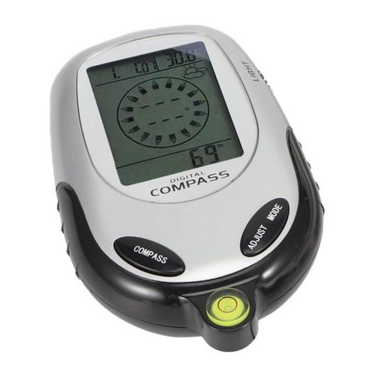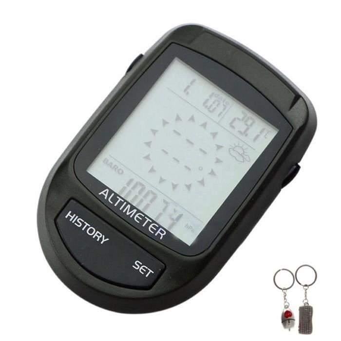 Ultra léger et avec un crochet pour l'accrocher au sac ou au harnais, il vous donne votre altitude, la pression atmosphérique et même l'azimut. Plus besoin de... [BOÎTIER ABS] Le boîtier ABS de l'altimètre numérique a une bonne résistance à l'usure pour assurer les composants internes. [AFFICHAGE RÉTROÉCLAIRÉ] L'altimètre numérique est doté d'un rétroéclairage ultra lumineux qui vous permet de voir clairement les lectures sur l'écran LCD, quel que soit l'environnement dans lequel vous vous trouvez. Détecteur Azimut Température Altitude Baromètre Altimètre Numérique, Facile à Transporter, Altimètre Altimètre Numérique Baromètre [Fonctionnement simple] Cet altimètre portable numérique est actionné par clé, avec des touches réactives, très pratique pour une utilisation en extérieur. Manomètre numérique pour pneus 150 Psi Abs 4 réglages avec écran LCD rétroéclairé et poignée... 1., [OUTIL MULTIFONCTIONNEL] L'altimètre numérique est basé sur l'électronique de détection d'azimut et barométrique et affiche le relèvement, la direction, l'horloge, la température, les prévisions météorologiques et l'altitude., 2., [AFFICHAGE RÉTROÉCLAIRÉ] L'altimètre numérique est doté d'un rétroéclairage ultra lumineux qui vous permet de voir clairement les lectures sur l'écran LCD, quel que soit l'environnement dans lequel vous vous trouvez., 3., [BOÎTIER ABS] Le boîtier ABS de l'altimètre numérique a une bonne résistance à l'usure pour assurer les composants internes., 4., [TAILLE PORTABLE] La conception spéciale du crochet de cet altimètre numérique facilite le transport de cet appareil dans divers sports de plein air., 5., [Fonctionnement simple] Cet altimètre portable numérique est actionné par clé, avec des touches réactives, très pratique pour une utilisation en extérieur. Baromètre numérique, Baromètre altimètre numérique, Récepteur de