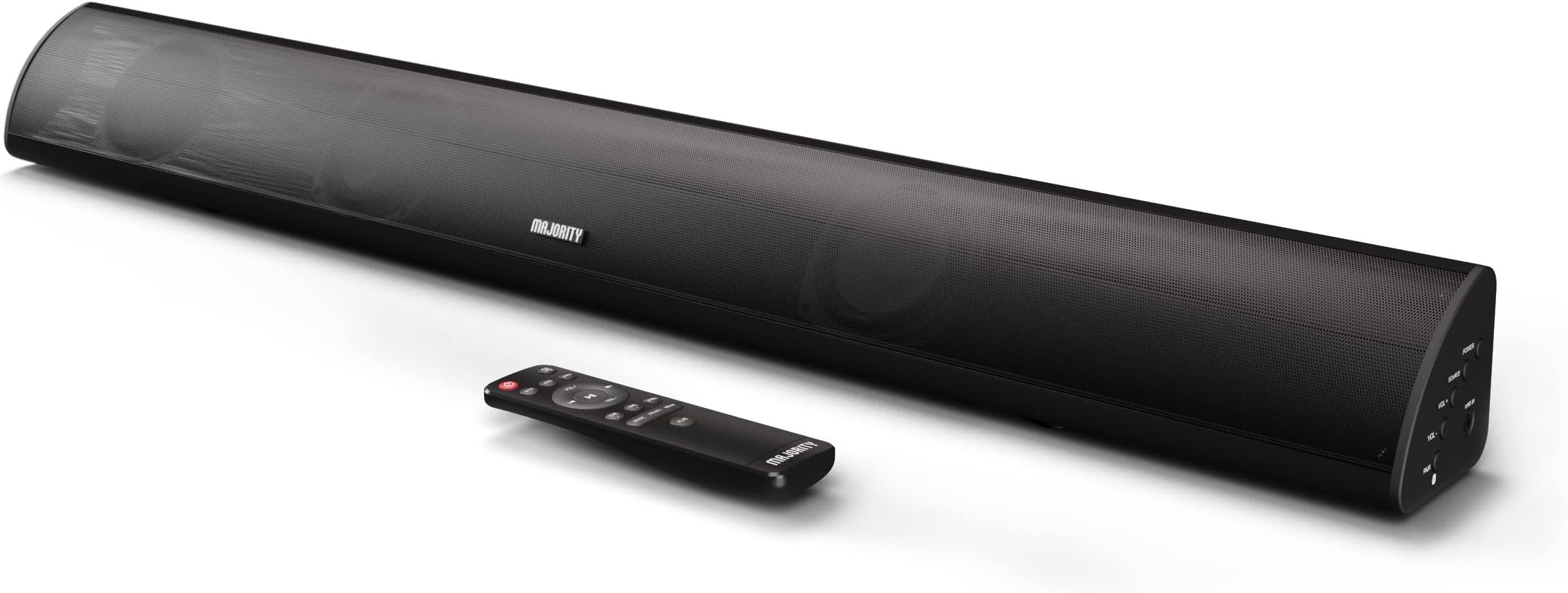 Ultiea Barre de son pour TV, barre de son Big Woofer de 13,25 c, barre de son 190 W avec... La Majority Bowfell est plus qu'une barre de son typique. Cette petite barre de son pour TV remplit votre pièce d'un son captivant, créant une atmosphère cinématographique. Musique, radio, jeux, films, sport en direct. Choisissez Majority pour une garantie de 3 ans et un service client exceptionnel. Nous vous présentons la barre de son Bluetooth 2., 0 Majority Bowfell – Améliorez votre divertissement à domicile avec cette centrale électrique de 50 W. Optez pour un véritable sans fil avec notre télécommande fournie pour régler le volume, les paramètres EQ, la source, et plus encore. Manuel d'utilisation de la barre de son avec mini caisson de basses Le colis comprend 1 barre de son Bowfell, 1 télécommande, 1 câble RCA, 1 câble d'alimentation, 1 câble auxiliaire, et un manuel de l'utilisateur (français non garanti). Le contrôle EQ intégré vous permet de régler l'audio à votre goût, que vous profitiez de la musique, de la radio, des jeux, des films ou des sports en direct. How To Connect Majority Bowfell Barre De Son Bluetooth Pour TV Et Ordinateur | 50 W Enceinte Tv Avec la connectivité Bluetooth, c'est l'une des meilleures barres de son sans fil pour TV, vous permettant de diffuser sans effort de la musique depuis votre smartphone, tablette ou d'autres appareils. La connectivité est un jeu d'enfant avec la barre de son Bowfell. Dotée d'une technologie de pointe, cette barre de haut-parleur de 38,1 cm garantit une expérience audio immersive. KabelDirekt – Câble audio optique ini-TOSLINK avec protection du signal – 3 (ini-TOSLINK à... Améliorez votre audio domestique avec la Bowfell, votre barre de son ultime haut-parleurs TV et « barra de sonido » en un. Le Majority Bowfell est compact mais puissant, il s'adapte à votre bureau ou sous votre téléviseur. Dimensions du produit : 7,2 x 38,6 x 5,4 cm, 1,5 kg. Ne vous contentez pas de haut-parleurs TV ordinaires, choisissez le Majority Bowfell pour un voyage audio extraordinaire. La télécommande incluse facilite le changement de source et le réglage des paramètres sans quitter votre siège. Immergez-vous avec un son cinématographique dans votre propre maison.