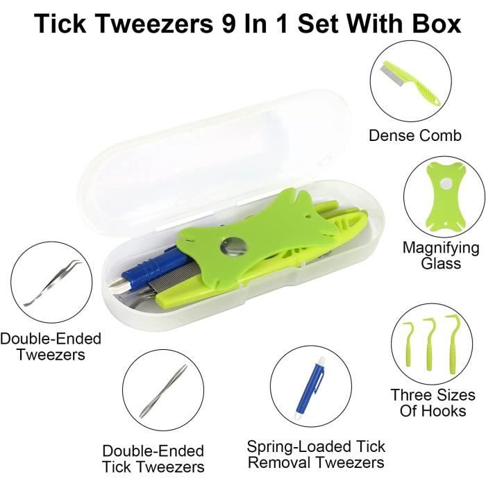 Outil Enlever Tiques Chien Chat Kit D'outils Pour Enlever Les Tiques Avec Barre à Tiques, Pince à épiler, Carte D'identité Pour Chiens, Chats Et Humains Pour La Prévention Du Lyme Tire Tique Humain Pince à Tiques Pour Chien Et Chat, Accessoires Anti Tiques Pour Chiens Et Chat Pince A Tiques 8 En 1 Avec Etui Pince A Tiques Pour Humains Chiens Enfants Retrait Des Tiques En Quelques Secondes Question] Comment reconnaitre une pince à avoyer pour les scies à... Mode d'emploi Outil pour enlever les tiques Il élimine efficacement les tiques et les puces de différentes tailles et protège votre animal de compagnie à tout moment. 【Sûr et indolore】 Cet outil de retrait de tiques élimine les meilleures puces et tiques qui sortent du corps de votre animal de compagnie. Description du produit 1 pièce. Il élimine non seulement les tiques très rapidement, mais il est également particulièrement doux pour la peau de votre animal de compagnie. Large gamme d'applications : le kit d'outils 8 en 1 pour retirer les tiques avec boîte de rangement est l'outil le plus sûr, le plus rapide et le plus facile pour les chats, les chiens et autres animaux domestiques. La pince à tiques élimine en toute sécurité, facilement et rapidement les tiques de toutes tailles, types et gravités. Kit d'Élimination des Tiques pour Animaux de Compagnie, Facile à Utiliser, Élimine les Puces, Crochet, Pince, Extracteur d'Acariens, pour Chiens et Chats...