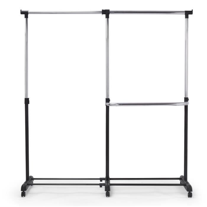 Charge maximale de chaque rail: 56,7 kg Yaheetech 190 x 55 x 178 cm Portant Penderie à Vêtement Métal Chromé... Sa capacité maximale est de 113kg de poids uniformément reparti. Il peut être utilisé à la fois en intérieur et en extérieur ou à des fins domestiques et commerciales. Portant Réglable Hauteur Largeur Yaheetech Grande Portant à Vêtements 2 Barres Extensibles Hauteur Reglable Metal Chrome Rangement De Stockage Inferieur 16118646 Portant Vêtements Le portant peut supporter un grand nombre des affaires. Un design simple le rend facile à assembler. PORTANT EXTENSIBLE: les barres du portant sont télescopiques tant en hauteur (129-189 cm) qu’en longueur (139-164 cm). EXTRA ESPACE DE STOCKAGE : des petites barres dans les côtés vous permettez d’accrocher encore plus des affaires telles que des parapluies, serviettes de bain ou des foulards. Au bas du portant, vous pouvez placer des boîtes de rangement. Le porte-vêtement réglable peut être étendu horizontalement et verticalement pour vos besoins. Il peut être utilisé dans une chambre à coucher, un balcon, une cour ou un centre commercial, une salle d'exposition, etc. Il permet de transporter et d'organiser efficacement divers articles tels que vêtements, sacs, parapluies et chaussures. Fabriqué en métal chromé robuste, ce portant à roulettes peut supporter une charge allant jusqu'à 113 kg, tout en étant facilement déplaçable grâce à ses quatre roues C'est un porte-vêtements robuste. Portant de vêtement pliable pour bien stocker et déplacer Vestiaire Télescopique Réglable Portant Vêtements Télescopique