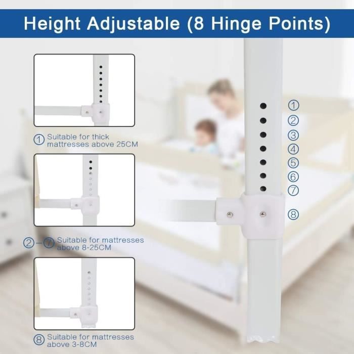 Protection Lit Anti Chute Bébé Barrièr D Sécurité Nfant Lit,barrièr Lit Nfant Bébé Pliabl Mouss Soupl, Barrièr Protction Blanc Au Millur Prix Protection Anti Chute Lit Enfant Barriere de lit portable SAFETY 1ST : Comparateur, Avis, Prix YRHOME Barrière de Lit Pliable 180cm Sécurité Enfant Réglable en Hauteur Pliable à 180 Degrés... Avantages : Doux, confortable, respirantFonction : Augmente l'amortissement et protège la sécurité de l'enfantBarrière de lit respirante spécialement conçue pour les bébés, dotée de pompons doux en trois dimensions et d'un tissu de qualité maternité pour une sensation de confort et de douceur. Matériau de qualité : Cette barrière de lit, qui peut être utilisée comme Coussin Anti-Chute Protection, est recouverte d'une peluche ultra douce – douce au toucher et agréable pour la peau. Pratique et polyvalent : Cette protection latérale convient non seulement aux lits pour tout-petits, mais elle s'adapte également parfaitement à la croissance de votre enfant. Cette barrière de lit ne sert pas seulement à décorer le lit, mais peut également empêcher efficacement l'enfant de heurter la tête de la barrière ou de se coincer les mains et les pieds. C'est un accessoire polyvalent et pratique Facile à nettoyer : Cette Barriere Enfant Pliable se lave à la main à 30 °C (cycle délicat) ou en machine avec un filet à linge (cycle délicat). Facile à installer : Notre protection matelassée pour lit tout autour convient à tous les types de lits. Compatibilité universelle: convient aux enfants âgés de 18 mois à 5 ans, ce rail de lit s'adapte à la plupart des lits standard avec des matelas entre 10 et 20 cm d'épaisseur (à l'exclusion des lits superposés, des lits, des lits à eau et des aéristiques