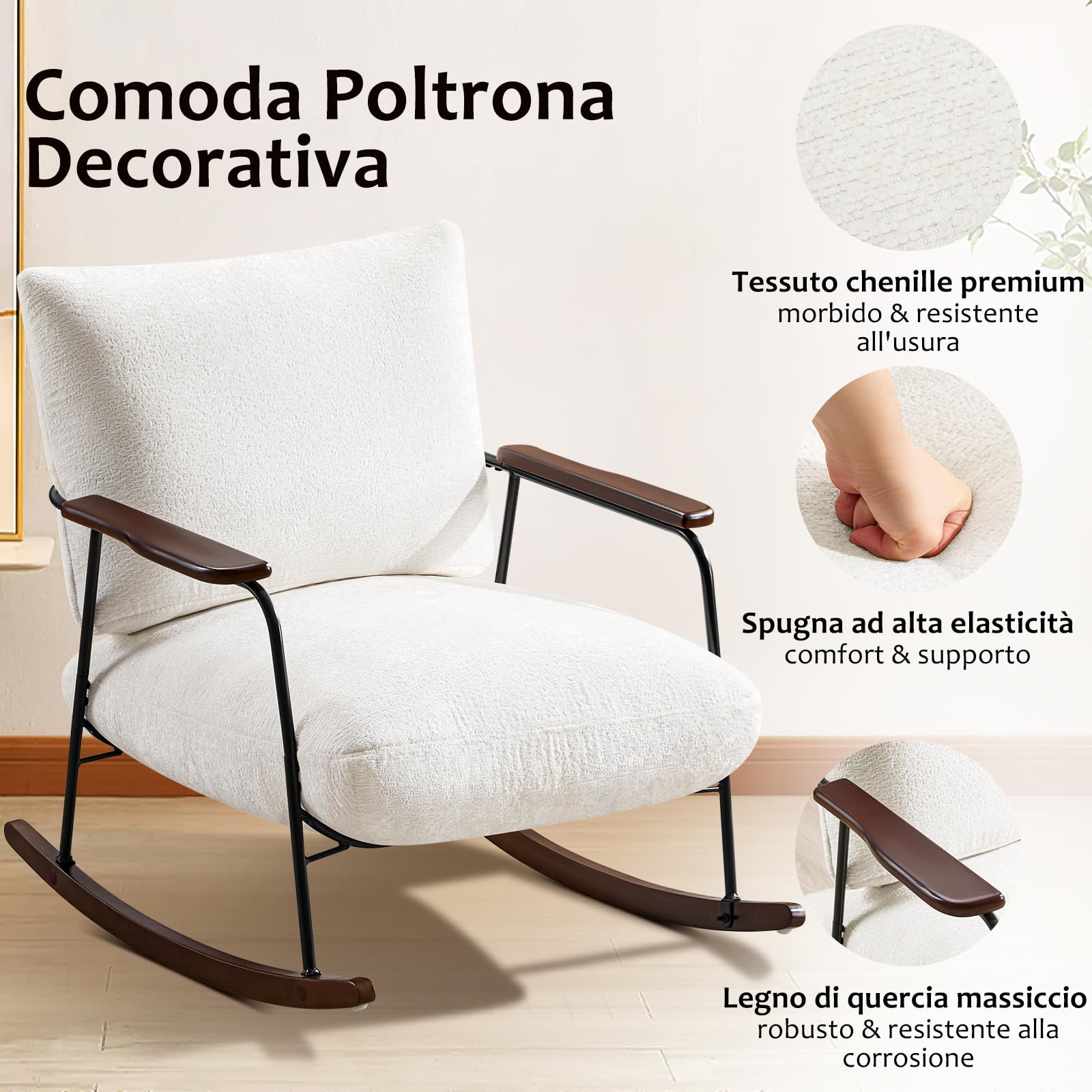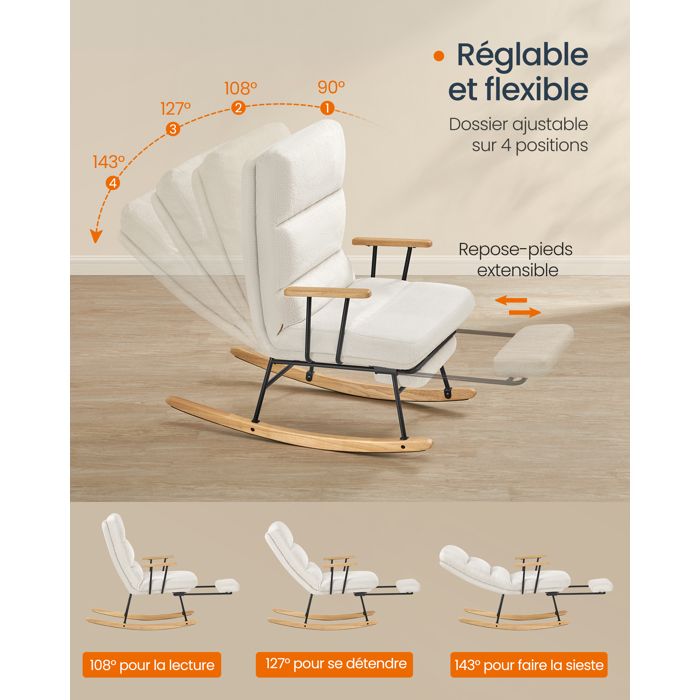 Fauteuil Allaitement Lecture Accoudoirs Hellove Fauteuil à Bascule Avec Pieds En Bois Massif, Rocking Fauteuil De Lecture Fauteuil à bascule allaitement rocking chair scandinave revêtement Fauteuil à Bascule Confortable en Tissu, avec Accoudoirs et Dossier... 【Confort Douillet à Longueur de Journée】Découvrez un confort doux comme un nuage dans ce Fauteuil à Bascule apaisant, équipé d'un coussin épais (25 cm) en mousse haute densité et d'une assise spacieuse de 67 x 56 cm. Le généreux rembourrage et le tissu respirant offrent un soutien exceptionnel lors de son balancement doux, épousant naturellement les courbes de votre corps pour un confort total — que ce soit pour lire, allaiter ou simplement vous détendre 【Construction Robuste et Sécurisée】Fabriqué avec une structure hybride en bois dur et acier, ce Fauteuil Salon Relax supporte jusqu'à 136 kg en toute sécurité. Détends-toi sans stress et profite de moments confortables Lieu de retraite paisible : lumière du soleil, thé et un livre – votre coin est parfait. La base de balancement protège les sols grâce à ses bords arrondis et ses patins anti-rayures, idéale pour les foyers avec enfants ou animaux 【Utilisation PolyvalFauteuiFauteuil à Bascule avec Pieds en Bois Massif, Rocking Chair avec Coussin Lombaire, Fauteuil Salon Relax avec Accoudoirs, Fauteuil Allaitement Lecture Confortable pour Salon Chambrel à Bascule avec Pieds en Bois Massif, Rocking Chair avec Coussin Lombaire, Fauteuil Salon Relax avec Accoudoirs, Fauteuil Allaitement Lecture Confortable pour Salon Chambreente dans Toutes les Pièces】Qu’il soit placé au salon, dans la chambre, la nursery, sur le balcon ou dans votre bureau, ce Fauteuil Allaitement Lecture s’intègre harmonieusement à votre décor tout en offrant un coin cocooning pour lire, allaiter, vous relaxer ou simplement savourer un moment de tranquillité 【Assemblage Simplifié et Support Dédié】Avec des instructions claires et tous les outils inclus, le montage prend moins de 15 minutes. Rocking chair : toute la sélection Bienvenue dans notre section Rocking chair : avec un large catalogue de produits, toute notre expertise en Tous les fauteuils et Canapé Salon Séjour est à votre disposition pour vous permettre de faire le bon choix, au meilleur prix. Découvrez par exemple notre modèle Fauteuil fixe Tissu beige : un best-seller, apprécié pour ses qualités de...
