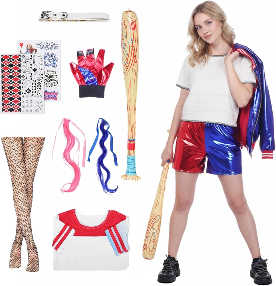 Veuillez consulter le tableau des tailles sur l'image avant d'acheter. Ensemble Veste Short Batte Accessoires Quinn Batte Baseball Costume Cosplay Quinn BIQIQI Pour Femme - Ensemble Complet Avec Veste, Short, Bate De Baseball Batte Baseball Déguisement Cosplay Femme Préparez-vous à plonger dans l'univers vibrant et captivant de Clown grâce à nos accessoires soigneusement sélectionnés. 【Design unique】notre élégant Déguisement Quinn Costume pour femme reflète parfaitement l'image du personnage et arbore un imprimé raffiné sur le manteau, ce qui en fait un costume Quinn classique et tendance. Que vous souhaitiez compléter votre tenue ou ajouter votre touche personnelle, nos accessoires sublimeront votre expérience cosplay. 【Occasions multiples】Des défilés d'Halloween au Carnaval de minuit, faites forte impression lors de fêtes, d'événements cosplay, d'anniversaires, de carnavals et bien plus encore avec nos superbes costumes Quinn. Déguisement Harley Quinn femme avec perruque et batte gonflable - Suicide Squad Il comprend une veste imprimée, un t-shirt, des gants oversize, un short, des chaussettes, un collier, une batte de baseball et des autocollants. Chaque fille trouvera la taille qui lui convient et profitera pleinement de ce costume. Cette tenue complète comprend tout le nécessaire pour vous transformer en ce personnage emblématique. Si vous êtes fan de clowns, ce costume Quinn est fait pour vous. Qu'elle souhaite révéler son clown intérieur ou simplement attirer les regards, nos costumes de cosplay sont parfaits en toute occasion. Coloriage Harley Quinn à imprimer sur Costume Harley Quinn pour enfants - Costume dHalloween Harley Quinn... Avertissement De Sûreté Non Cet ensemble tout compris vous fait gagner un temps précieux en achetant tout en une seule fois. Ce costume Quinn est une tenue de carnaval d'Halloween pour femme qui vous permettra de vous démarquer et de passer un bon moment à tout événement. Description du produit Ce costume de Quinn chic pour femme reproduit parfaitement l'image de la silhouette et dispose d'un imprimé exquis sur le manteau, des costumes Quinn classiques et à la mode.