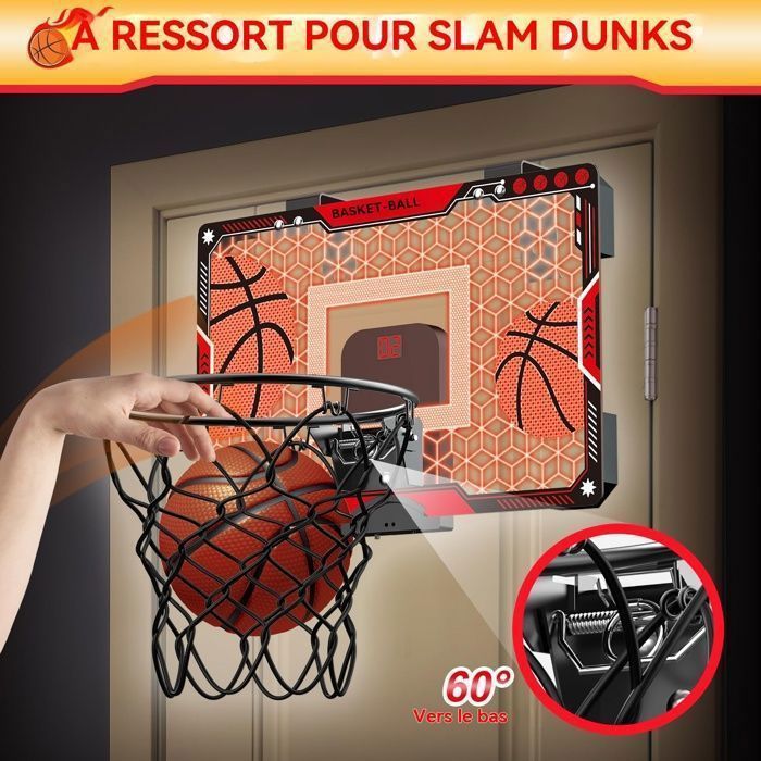 Excellent Effet d'Absorption des Chocs: Équipé de coussinets en mousse résistants aux chocs, notre panier réduit le bruit et protège votre porte des rayures. La planche arrière incassable est extrêmement solide et résistante, vous n'avez donc pas à vous soucier de la déformation ou de la rupture Il s'applique à la plupart des portes de la maison, de la salle de classe, du dortoir ou du bureau. Chaque panier est célébré avec des acclamations. AJW-Mini Panier de Basket Panier de Basket Interieur Mini Panier de Après un dunk, l'anneau revient instantanément à sa position d'origine, offrant aux joueurs une expérience de basket-ball réaliste. Spécifications Matériau : Acrylique + Métal Contenu du paquet 1 x Panier de basketball pour enfants d'intérieur 4 x Petits ballons de basketball Tarmak Panier de basket mural set mini B Deluxe pour enfant et adulte à... Le panier de basket intérieur pour enfants, accroché à la porte, peut transformer n'importe quel endroit en terrain de basket. Profitez de l'expérience de tir à tout moment, à l'intérieur comme à l'extérieur. Il y a 2 crochets sur le panneau pour accrocher ce panier sur la porte sans percer. Mini Basket Mural Tableau électronique Coriver Panier De Basket Interieur, 40 X 30 Cm Mini Panier De Basket Basket Avec Score électronique Système de panier de basketball mural Cadeau de Basket-Ball Idéal pour les Enfants: Les jeux de basket-ball en intérieur et en extérieur sont d'excellents sports pour les amateurs de basket-ball de tous âges.