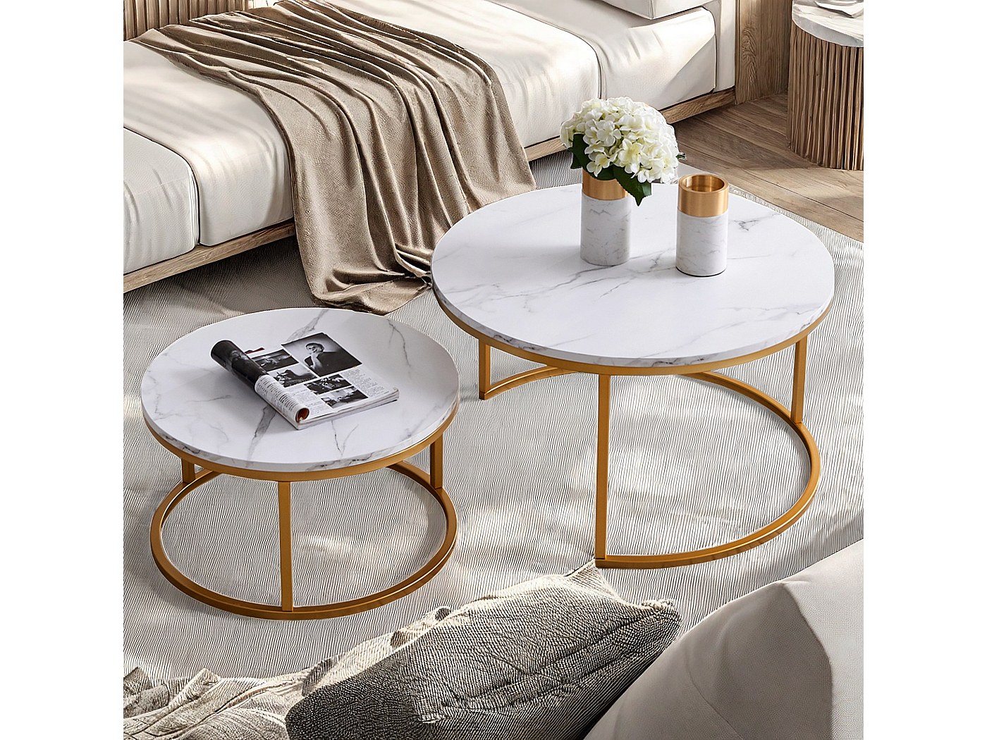 • Gardez le produit éloigné du feu et des sources de chaleur. N'utilisez pas de produits à récurer, de produits de nettoyage agressifs ou de chiffons mouillés. • Les enfants doivent être tenus à l'écart pendant le montage. Aménager un salon avec deux canapés : 15 idées et solutions Veuillez ne pas utiliser de brosses dures ou d'éponges métalliques, car elles rayeront le panier métallique ou le dessus de table. • Utilisez les options de recyclage disponibles. WOHNLING Table Basse Lot de 2 Petite Table d'appoint de Salon Métal... Deux étagères et la fonction gain de place qui fait que la petite table se glisse sous la grande table couvrent le côté pratique. Il ne vous reste plus qu'à choisir une place et à commander !, </p> Tables Embôtable WOHNLING Table Basse Ronde Métal 66x66x30 Cm Petite Table De Salon Moderne Noir - Maison Petite Table Basse Salon Mesures de sécurité • Les bords du meuble peuvent causer des blessures en cas d'inattention. Avertissement De Sûreté Informations générales de sécurité & Instructions de montage • Montez toujours le produit conformément aux instructions de montage. État de livraison : entièrement assemblé et bien emballé., </p> <p>LIVRAISON ✔ Un ensemble de 2 tables d'appoint sans décoration. <p>ENTRETIEN ✔ Il est préférable d'essuyer la surface avec un chiffon en coton tiède légèrement humide et d'éliminer toute humidité résiduelle avec un chiffon non pelucheux. Veuillez éviter les produits abrasifs et les produits de nettoyage agressifs., </p> Élimination et environnement • Éliminez le produit conformément aux réglementations locales. • Respectez la capacité de charge maximale. • Attention, les petites pièces, comme les vis, peuvent être avalées par des enfants. Description du produit Conception - Table d'appoint au design moderne - Deux tables de tailles différentes - Cadres de table au design inhabituel avec une structure en branchesDimensions - Grande table (LxPxH): 46 x 46 x 42 cm - Petite table (LxPxH): 36 x 36 x 39 cm - Diamètre plateau grande table: 40 cm - Diamètre du petit plateau: 29 cmCouleur - OrParticularités - Les tables peuvent être drapées individuellement ou en ensemble - Peut être utilisé dans différentes pièces telles que le salon ou la salle à manger - Grâce au design moderne, l'ensemble peut être facilement combiné avec différents styles d'ameublement - Les tables peuvent être imbriquées pour économiser de l'espace - Chaque table a été fabriquée à la main avec amour et est donc une pièce unique. Veuillez ne pas utiliser de brosses dures ou d'éponges métalliques, car elles rayeront le métal. • Attention aux points de pincement et de cisaillement, surtout avec les pièces mobiles. Lot 2 Tables Empilables Salon 2 Tables Gigognes Rondes Design Art Déco - Métal Doré Et Verre Trempé - Salon Moderne Lot Tables Empilables Design • Séparez les pièces en bois, plastique et métal avant l'élimination.
