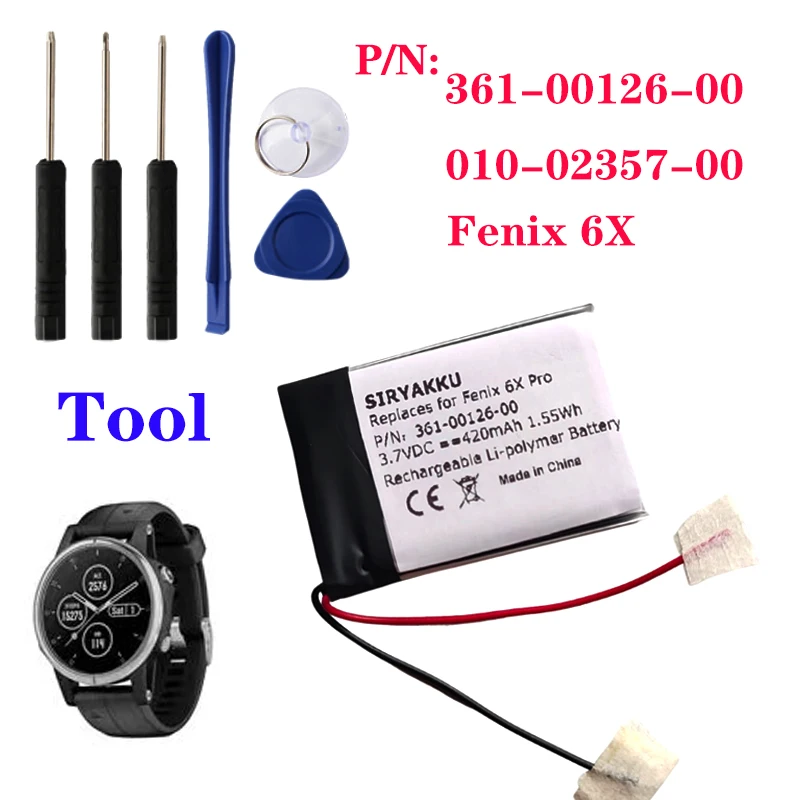 BXX Batterie de rechange pour Garin 361-00034-02, Fenix 3, Fenix 3 HR... Modèles compatibles : Garmin Fenix 6X, 010-02357-00, Tactix Delta, numéro de pièce : 361-00126-00 Type de batterie : batterie Li-ion polymère ; batterie sûre et fiable, certifiée par UL, CE, UN38., 3, RoHS 500 MAh Li-ion Batterie 361-00096-00 - Batterie Pour Garmin Fenix 5S 361-00096-00 - 22.23 Batterie Fenix 6X Numéro de pièce de batterie compatible : 361-00126-00 Attention : 1., Ne pas ouvrir la batterie., 2., Ne pas écraser, percer ou disposer dans le feu ou l'eau., 3., Ne pas exposer à 60 °C. Garmin Fenix 6s Akku 170mah Ersatz Akku 361-00126-00 Für Garmin Capacité : 500 mAh Tension nominale : 3,7 V Dimensions de l'emballage : 37,00 x 25,50 x 6,00 mm Poids : 10 g Température de fonctionnement : moins de 60 °C. Plus de 300 fois la durée de vie ; longue durée de vie