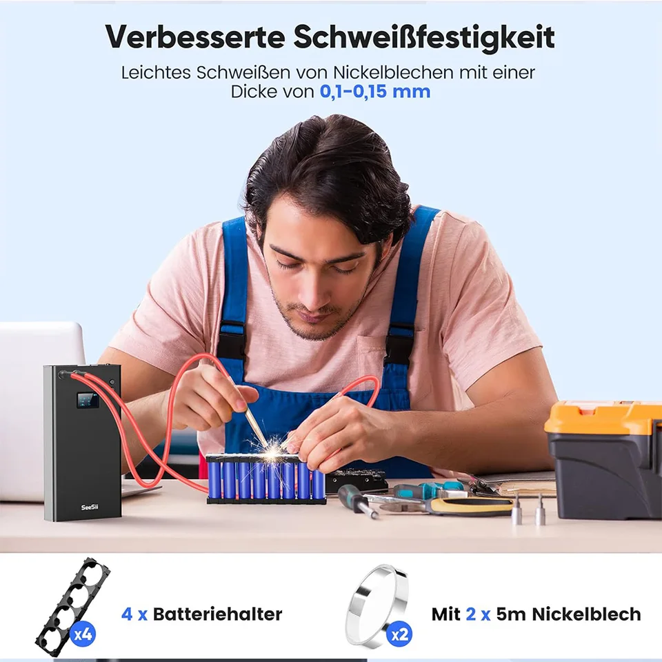1 Batterie Cylindrique 2 Batterie du Téléphone 3 Pile Bouton 4 DlY Fait à la Main Sa conception tout-en-un garantit une utilisation facile d'une seule main. Écran OLED coloré et protections de sécurité intégrées : Affiche en temps réel le mode système, la puissance, l’état de préchauffage, la temporisation et l’avancement de la soudure. Il prend en charge le soudage de tôles nickelées d'une épaisseur de 0,1 à 0,2 mm, ce qui le rend polyvalent pour différents projets de soudage sur batterie. Soudeuse par points à impulsion 738AL Machine à souder pour batterie 0 La mini soudeuse par points de SeeSii élimine le besoin de pointes de soudage supplémentaires et offre un confort et une efficacité incomparables. Améliorez votre soudage avec le poste à souder SeeSii, doté de 80 niveaux de puissance réglables, d'une double sortie d'impulsion, d'une batterie 5,0 Ah permettant de réaliser plus de 800 soudures par charge et d'un design compact et intégré, parfait pour les bricoleurs et les professionnels. Mophorn Soudeur par points à batterie 737G, machine de soudage portable haute puissance avec 2... Destiné aux professionnels et aux passionnés de bricolage ; choix parfait pour soi-même, des amis ou des proches (père, mari, bricoleur). Soudeurs par Points Vidéo de marchand Conception Intégrée : Alimentation et stylo de soudure en un seul appareil, pas de stylo de soudure externe nécessaire. Outil De Soudage Laser Industriel Mini Soudeuse Par Points Batterie 7500mAh Ecran LCD En Couleur Amélioré Machine De Soudage Par Outil Réparation électronique Batterie MINI SOUDEUSE PAR Points Portable Pour Kit D'Outils De Soudage De Batterie 18650 EUR 110,53... Polyvalence pour différents types de batteries : Convient aux piles lithium cylindriques, aux batteries de téléphones portables, ainsi qu’aux batteries Ni-MH et Ni-Cd.