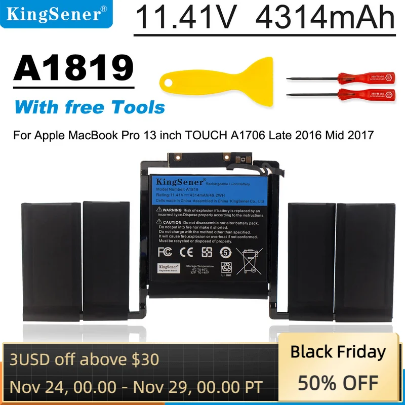 Veuillez vérifier que cette batterie est compatible avec votre ordinateur avant d'acheter. 【Assurance qualité】 : 100 % neuve, chaque batterie a été testée en usine, la batterie de classe A assure une charge rapide et une faible consommation d'énergie, la protection de circuit intégrée assure sécurité et stabilité. Modèles compatibles : MacBook Pro 13 A1706 (fin 2016 mi-2017). Remplacement Batterie MacBook Pro Batterie De Rechange 49,2 Wh A1819 Pour MacBook Pro 13" Fin Batterie Ordinateur Apple Compatible Dimensions : 23,7 × 10,8 × 0,7 cm Cycle de charge : 500., Cellule : 6 cellules Temps de décharge : environ 1,5 à 3,5 heures., État : neuf. Les modèles de batteries compatibles sont les suivants : MacBook Pro 13 A1706 (fin 2016, mi-2017) avec version Touch Bar. Pin MacBook Pro 13″ A1706 (Late 2016, Mid 2017) – A1819 (6 cell) CÔNG... La nouvelle batterie redonne vie à votre ordinateur portable. MacBook Pro Core I5 2,9 13 avec barre tactile A1706 (fin 2016). A1819 Battery For Apple Macbook Pro 13 2016 A1706 MNQF2CH/A Store Shoppe MacBook Pro 13 A1706 (EMC 3163) (mi-2017). MacBook Pro 13 A1706 (EMC 3071) (fin 2016). Matériau de qualité : la batterie A1819 utilise un matériau lithium-ion, de bonnes performances de sécurité, une longue durée de vie. Spécifications: Matériau : lithium-ion Capacité : 49,2 Wh Tension : 11,41 V Poids : 350 g. Numéro de pièce compatible : A1819 A1706 A1706(EMC 3071) A1706(EMC 3163) 020-01705., 【Spécifications】 : taille 23,7 x 10,8 x 0,7 cm.