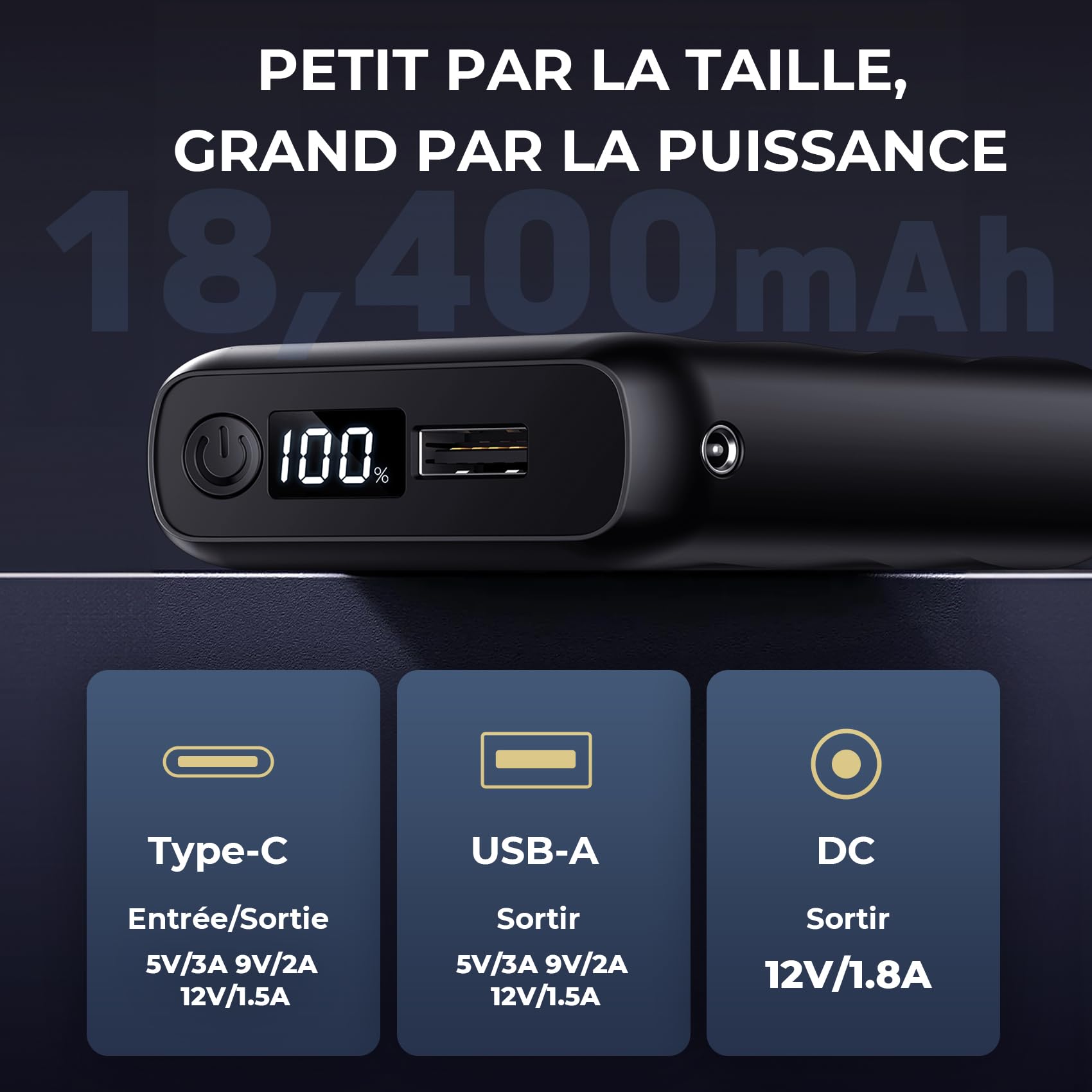Batterie Externe Pour Veste Chauffante Batterie Externe 18400 MAh Pour Gilet Chauffant, Batterie 12 Chargeur Gilet Chauffant La meilleure banque d'alimentation pour les vêtements Batterie externe professionnelle pour gilet chauffant : la batterie externe pour gilet chauffant d'une capacité de 18400 mAh peut fournir 9 heures de temps de chauffage pour répondre à vos besoins quotidiens. Il peut également charger un iPhone 14/Galaxy S23 jusqu'à 3,5 fois. La batterie externe GOTOBI de 18400 mAh est un accessoire... Compatibilité universelle : convient à tous les gilets chauffants USB 5 V et à la plupart des vêtements chauffants 7,4 V CC 4,0 mm/CC 3,8 mm/CC 3,5 mm (via un câble interchangeable). Le port USB et le port de type C peuvent charger les téléphones et les appareils mobiles. Conçu pour la plupart des gilets chauffants, vestes chauffantes et sweats à capuche chauffants. Pour une (re)charge plus rapide, nous vous recommandons d'utiliser un adaptateur d'alimentation 5 V/3 A (jusqu'à 22,5 W), de sorte que la batterie soit complètement chargée en 6 heures. Léger et portable : par rapport à d'autres batteries externes sur le marché, le Gotobi a 60 % de capacité en plus, mais avec seulement 289 g, il est 15 % plus léger et 30 % plus petit en volume. Idéal pour les voyages et prend peu de place. L'écran LED indique la puissance restante de la batterie et permet une surveillance facile. Trouvez 12v/ 9v/ 7.4v de batterie de veste chauffante à tension réglable - de batterie pour veste/jacke chauffante et haute 18400mah - sortie / usb/ type-c...