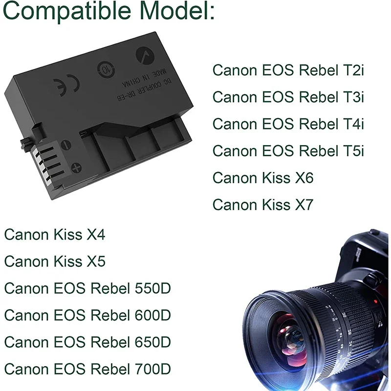ACK-E8 PD-Netzadapter-Kit Paket Beinhaltet: 1 x USB-C-Kabel1 x DC-Koppler DR-E81 x PD-Adapter1 x Handbuch ne peut pas être chargé, il est alimenté par une prise ou un courant mobile. Le produit dispose d'un schéma de fonctionnement pour référence. Équipé d'un câble CC PD, vous pouvez charger entre une batterie externe mobile, un chargeur de voiture PD et une prise PD. Plusieurs méthodes de charge, rend les prises de vue extérieures ou intérieures plus pratiques La lampe d'affichage rouge s'allume toujours lorsque l'alimentation est allumée. Prend en charge seulement 18W 30W 45W 60W 65W PD Chargeur mural / alimentation mobile PD / chargeur de voiture PD pour alimenter l'appareil photo, veuillez ne pas utiliser d'autres appareils. ACK-E8 Câble USB Type-C LP-E8 Batterie factice DR-E8 PD Kit adaptateur pour appareil photo Canon EOS T2i T3i T4i T5i 550D 600D 650D 700D Kiss X4 X5 X6. 4,5... ★Compatible avec : kit de batterie factice DR-E8 pour Canon EOS Rebel T2i, T3i, T4i, T5i, Canon EOS 550D, Canon EOS 600D, Canon EOS 650D, Canon EOS 700D, pour Canon EOS Kiss Digital X4, X5, X6i, X7i, et d'autres modèles. Remarque : cet appareil est utilisé uniquement pour l'alimentation de la caméra. Batterie Factice DR-E8 T2i T3i Câble USB ACK-E18 + Batterie Factice DR-E18 LP-E17 + Chargeur 5V 3000ma Alimentation Appareil Photo Canon Certains modèles de caméras peuvent consommer un courant plus élevé, veuillez donc utiliser un bloc d'alimentation haute performance. Utilisez le bon bloc d'alimentation PD et QC3., 0/4., 0 ou le courant mobile. ★ Contenu de l'emballage : 1 Câble USB-C ACK-E8, 1 Coupleur DC DR-E8,1 Adaptateur PD, 1 Manuel D'utilisation. Veuillez donc utiliser un bloc d'alimentation haute performance. ★ Utilisation des suggestions : après avoir connecté au bon bloc d'alimentation PD et QC3., 0/4., 0 ou à la bonne banque d'alimentation. Certains modèles de caméra consomment peut-être un courant plus élevé. L'appareil photo peut démarrer normalement. ACK-E8 PD Netzadapter-Kit Kompatibel mit: Pour Canon EOS Rebel T2i Pour Canon EOS Rebel T3i Pour Canon EOS Rebel T4i, T5i Pour Canon EOS 550D / Canon 550D Pour Canon EOS 600D / Canon 600D Pour Canon EOS 650D / Canon 650D Pour Canon EOS 700D / Canon 700D Pour Canon EOS Kiss Digital X4, EOS Kiss Digital X5Pour Canon EOS Kiss Digital X6i, EOS Kiss Digital X7i et autres modèles Après avoir connecté le bon bloc d'alimentation PD et QC3., 0/4., 0 ou la batterie externe, le voyant rouge s'allume immergé il lorsque l'appareil est allumé., est ancien. Description du produit ACK-E8 PD-Kit Bevor Sie die Kamera öffnen, müssen Sie die Batteriefachabdeckung der Kamera schließen. Hinweis:Dieses Gerät wird nur zur Stromversorgung der Kamera verwendet. ★ Puissance Applicable : la puissance du chargeur PD pour téléphones portables doit être comprise entre 18W et 65W. Cable de unidad USB ACK E8 ACKE8 DR E8 batería simulada para cámara Sinon, l'appareil sera endommagé.