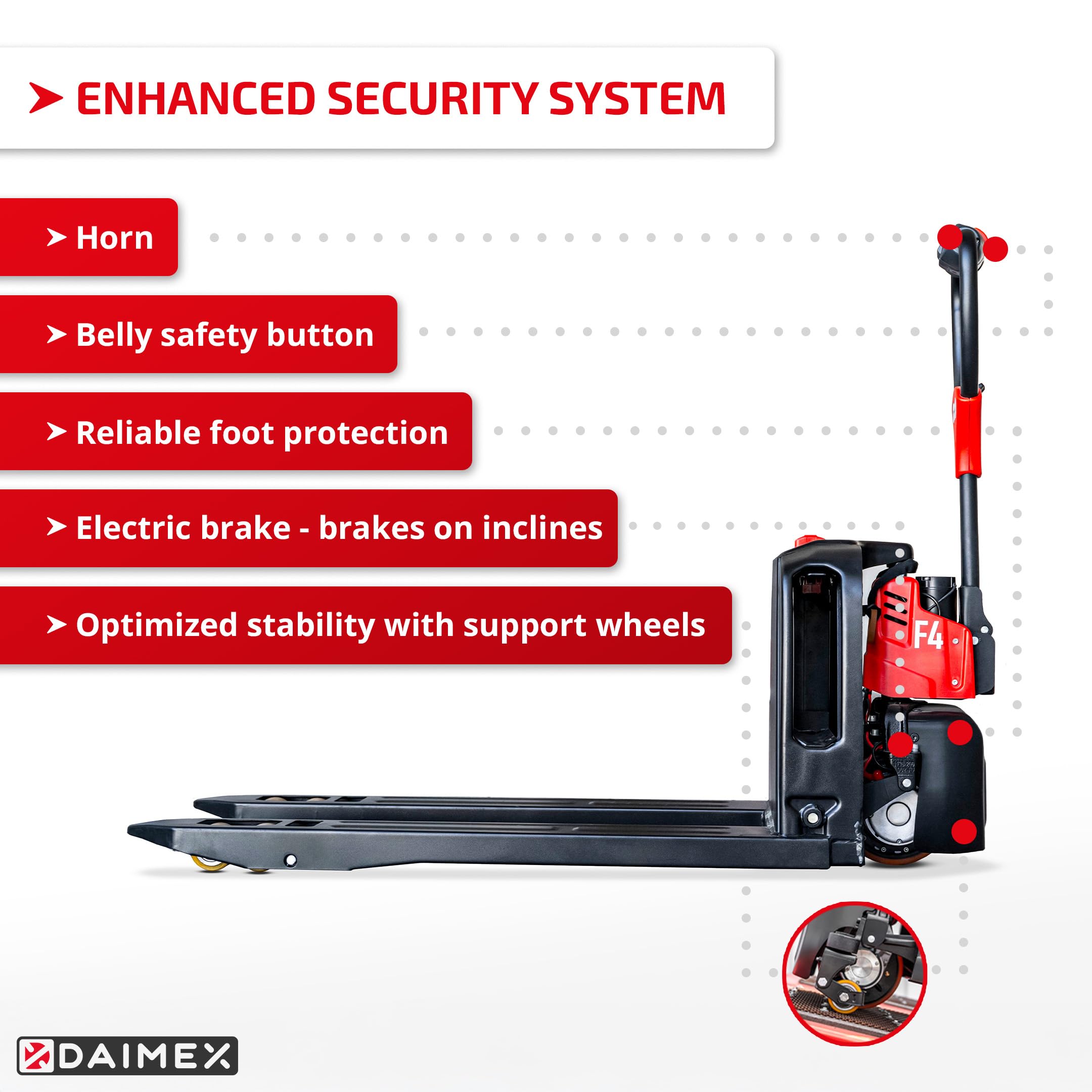 Dans les couloirs étroits ou les espaces de vente étroits, cet appareil permet un travail rapide et confortable. Transpalette Entrepôt Maniable Chariot élévateur électrique : Compartec F3 - Batterie Lithium-ion, Charge De 1500 Kg, Longueur De Fourche 1150 Mm. - Norme Industrielle - Performance Et Efficacité Fiables - Idéal Pour Les Entrepôts équipement Logistique Compact ✅ Grande fiabilité : design maniable avec contrôle précis pour les espaces confinés et les allées étroites Utilisation ergonomique avec la paume de la main ✅ Design ergonomique : tête de tiller confortable avec fonctionnement intuitif et position de préhension optimale pour un travail sans fatigue ✅ Dimensions des fourches : fourches robustes avec longueur optimisée pour les palettes Euro standard et divers transporteurs de charge Transpalette électrique EPL154 - 1500 kg de capacité de charge La roue motrice de 70 mm de large et 210 mm de large ainsi que les deux roulettes en polyuréthane résistant sous chaque fourche assurent une conduite sûre et stable. Avantages en un coup d'œil : Chariot élévateur entièrement électrique - Capacité de charge : Batterie lithium-ion 1500 kg (24 V/20 Ah)Plug & Play pour inserts multicouches. Le bouton de conduite lente sur la tête de timon permet de réduire la vitesse de conduite à tout moment et de l'adapter avec précision à la situation de transport ou de pièce. ✅ Capacité de transport : camion à palettes électrique robuste avec une capacité de charge maximale de 1500 kg pour une manipulation efficace des charges lourdes ✅ Caractéristiques de sécurité : équipé d'un interrupteur d'arrêt d'urgence, réduction automatique de la vitesse sur les extrémités et protection contre la surcharge Transpalette électrique EPT 15H est une excellente solution pour augmenter l'efficacité des opérations d'entrepôt en remplaçant des transpalettes hydrauliques aux transpalettes électriques. Ce modèle a une capacité de levage de 1,5 tonnes Daimex Pallet Truck électrique | Capacité de charge de 1,500 kg | Longueur de fourche 1,150 mm | Batterie lithium-ion 20 Ah | Roue de vol en polyuréthane... Le F4 est équipé d'une batterie lithium-ion puissante et sans entretien (24 V/20 Ah) qui peut être facilement chargée avec le chargeur externe fourni (24 V/4 A). Le matériau PU est durable, résistant à l'usure et offre une course silencieuse grâce à ses propriétés d'absorption des chocs. Chargeur externe (24 V/4 A)., Construction compacte. DAIMEX Chariot élévateur électrique F4 1500 kg Lithium-Ion Batterie externe Chargeur Ce transpalette électrique EP Equipment F4 a une capacité de charge de 1 500 kg et est équipé d'une batterie lithium-ion moderne.