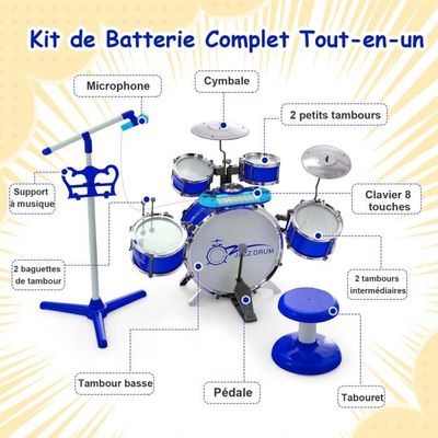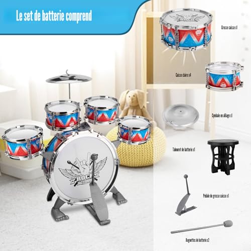 Batterie de jazz musicale pour enfants avec tabouret pour m zimoon Kit De Batterie Jazz Pour Enfants, 5 Tambours Avec Taboure... Tabouret Batterie Ensemble De Batterie Pour Enfants Débutants, Avec Tabouret Et Baguettes Batterie Musique Enfant Description du produit Description Caractéristiques -Couleur : Multi -Matériau : plastique -Taille : 52,00 x 25,00 x 61,00 cm/20,44 x 9,82 x 23,97 pouces -Taille : 21,50 x 23,00 x 0,00 cm/8,45 x 9,04 x 0,00 pouces Forfait comprenant 1 x jouet de tambour pour enfants 1 x tabouret Avertissement De Sûreté 1 Cette expérience ludique nourrit un amour durable pour la musique et favorise le développement personnel. Hilifexll Batterie Enfant, Batterie usique de Jazz avec Tabouret... Sa construction légère assure une manipulation aisée, permettant aux enfants de se déplacer et de jouer sans difficulté, tout en favorisant une exploration musicale en toute sécurité. 【Format compact】La batterie pour tout-petits mesure environ 52 x 25 x 61 cm (20,44 x 9,82 x 23,97 po), ce qui en fait la taille idéale pour que les jeunes enfants puissent jouer confortablement. 【Expérience musicale complète】Cette batterie pour enfants comprend tout le nécessaire pour initier votre enfant à la musique : tambourins, cymbales, baguettes et tabouret confortable. De plus, le tabouret inclus mesure 21,5 x 23 x 0,00 cm (8,45 x 9,04 x 0,00 po), offrant une hauteur d'assise idéale pour les batteurs.