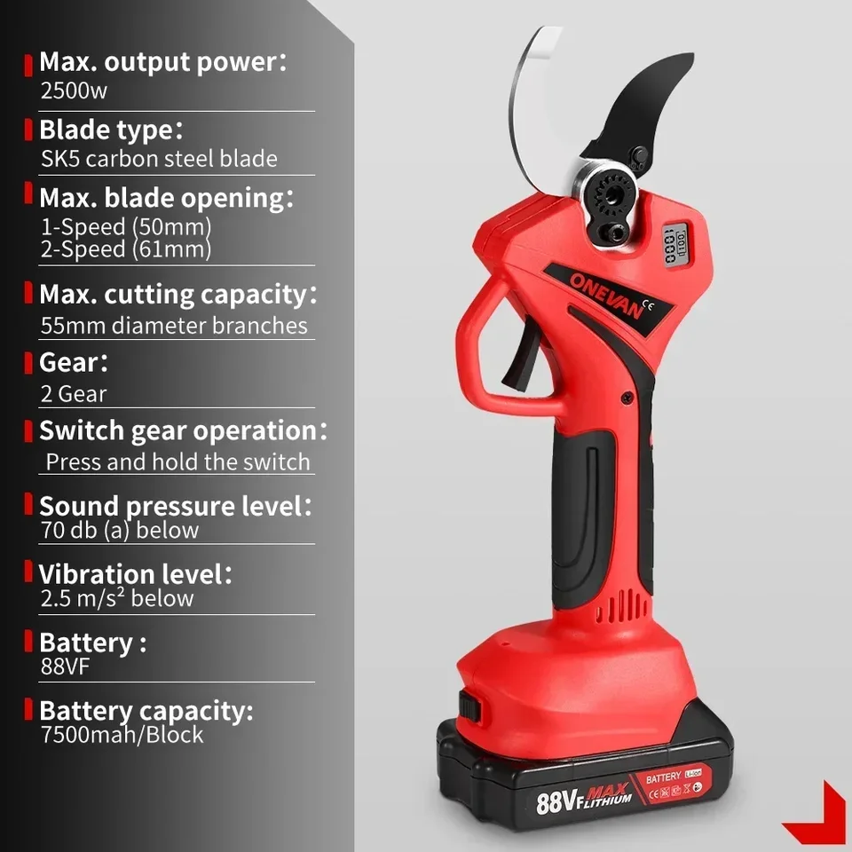 SpécificationsPuissance de sortie maximale : 450 WTaille de l'herbe : 110 mm (4-5/16 pouces)Taille de haie : 200 mm (7-7/8 pouces)Vitesse de levage : 2 500 tr/minNiveau de pression acoustique : 70 dB(A)Niveau de vibration : 2,5 m/s² ou moinsTension de la batterie : 20 VCapacité de la batterie : 2,0 Ah/pièce Cisaille à gazon sans fil / Tondeuse à arbustes manuelle - Jardin Léger et sans fil – Les cisailles à gazon et à arbustes sans fil ont une taille compacte et sont faciles à utiliser. Outil Jardin Sans Fil Onevan ONEVAN Taille Haie Batterie, Taille Haie Et Cisailles à Arbustes Cisaille Gazon électrique Onevan Tous les outils sont alimentés par des batteries au lithium et offrent un ensemble complet de commodités pour votre vie. Les lames sont spécialement conçues pour les pousses fines sur haies, arbustes, arbres et arbustes d'ornement. Gardena Cisaille à Gazon sans Fil ClassicCut Li :cisaille à Gazon avec... La puissante batterie de remplacement a une durée de vie plus longue, rend votre travail plus pratique et efficace, et la batterie peut être facilement remplacée sans affecter l'efficacité du travail. Le verrouillage de la gâchette supérieure empêche tout démarrage accidentel. Taille-haie sans fil 2 en 1 : il est multifonctionnel, équipé de deux lames différentes : largeur de la lame d'élagage 13 cm : convient pour la taille de haies, pépinières, arbres à thé ; longueur de la lame de tonte 20 cm : convient aux pelouses délicates et douces, sans outils Double verrouillage de sécurité – Ce cisaille à arbustes sans fil est équipé de dispositifs de sécurité tels qu'un protège-lame et un interrupteur de sécurité pour éviter les blessures accidentelles pendant l'utilisation. Équipées de lames de coupe à double action SK5, les scies doubles fonctionnent simultanément pour améliorer l'efficacité de la coupe, et la structure des lames de scie à double action réduit le risque de blocages et de bourrages pendant la coupe. Appuyez sur le verrou de la gâchette et appuyez sur la gâchette en même temps pour démarrer le taille-arbustes. ONEVAN se concentre sur la recherche et le développement ainsi que sur la production d'outils électriques sans fil. Les femmes ou les personnes âgées peuvent facilement l'utiliser d'une seule main.