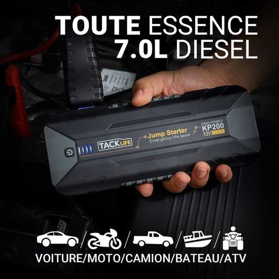 🚗【Démarrage Puissant】booster batterie voiture Relance les batteries en secondes (moteurs essence 10L/diesel 8L). Charge rapide pour téléphones, tablettes et appareils USB, plus éclairage d'urgence 48H avec mode SOS. Valeurs prédéfinies et arrêt automatique pour gonflage précis des pneus. Attention : Surtension d'air au démarrage – éviter de diriger la buse vers le visage. 🛡️ Protection Fiable Pinces haute qualité empêchant la surchauffe. Le Booster Batterie Voiture 6000A 10000mAh est un démarreur de batterie puissant, conçu pour démarrer facilement des véhicules 12V, qu'ils soient à essence ou diesel. Avec un courant de pointe de 6000A, il est indispensable pour les situations d'urgence Vérifier >50% de charge. Vérifier 50% de charge avant usage. Notre power pack délivre 6000A de courant de pointe pour relancer les véhicules en secondes – compatible avec voitures, camions, camping-cars, bateaux et moteurs essence 10L/diesel 8L. Booster Voiture Booster Batterie Voiture Démarreur De Voiture Portable Avec Compresseur Compresseur Air Intelligent Portable et Compact Booster]Le démarreur de saut de voiture avec 6000A une batterie morte en quelques secondes (jusqu'à 10L essence ou 8L moteur diesel)Il... 🚗【Consignes d'Usage】Arrêt auto après 5 min. 🚗【Ultra-Compact】Taille minimaliste – rangement facile dans la voiture. 🚗【Powerbank 12000mAh】Recharge rapide téléphones/tablettes + éclairage d'urgence 48h. 🚗【Précaution Essentielle】Choc d'air au démarrage – éviter de diriger la buse vers le visage. FLYLINKTECH Booster Batterie Voiture,6000A 26800mAh Démarreur, flylinktech 5000a 🚗【Protections Avancées】Câbles résistants (-30°C à 65°C), anti-surchauffe. 📦 Compact & Léger Plus petit qu'un livre ! ⚠️ Conseils Clés Veille automatique après 5 minutes (redémarrage en 3 min). Technologie lithium performante de -30°C à 65°C.
