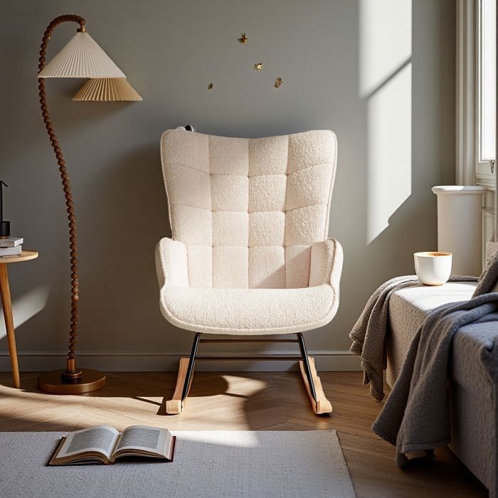 Structure en bois massif supportant jusqu’à 100 kg. Fauteuil à bascule d'allaitement en tissu teddy avec dossier haut pour adultes, pieds en métal, chaise de 83 x 54 x 93 cm Poche de rangement latérale pratique : Une grande poche intégrée sur le côté permet de ranger facilement des magazines, une tablette ou une télécommande, gardant vos objets du quotidien accessibles sans encombrer l’espace. Fauteuil Allaitement Bascule DEKKETO Fauteuil D'allaitement à Bascule, Teddy Fauteuil Allaitement Chambre Bebe, Rocking Chair Confortable Avec Dossier Haut Pour Adulte Salon Et IntéRieur, Rose Fauteuil Avec Repose-pieds Escamotable Inclut un repose-pieds escamotable et une poche de rangement latérale. Idéal pour salon, chambre ou bureau. Fauteuil à Bascule en Velours Teddy ,Rocking Chair,Canapé Simple... Son style sobre s’intègre dans différents intérieurs tout en offrant un espace de détente fonctionnel. Structure stable en bois massif : Le cadre est fabriqué en bois massif, assurant une bonne stabilité pendant le balancement. Chaise à bascule | Rocking chair | Fauteuil à bascule Vert foncé... L’assise profonde de 47 cm et la hauteur de siège de 60 cm permettent une position détendue, adaptée à la lecture ou au repos. ✅Nos produits sont accompagnés d'instructions de montage claires pour une installation rapide et facile. Revêtement doux en teddy-fleece : Le fauteuil est recouvert d’un tissu en teddy-fleece, agréable au toucher et chaleureux. Assise profonde (47 cm), hauteur d’assise 60 cm, revêtu de teddy-fleece doux. Polyvalence d’utilisation : Grâce à son design sobre et ses dimensions compactes, ce chaise à bascule convient à une chambre, un salon, un bureau ou une salle d’attente.