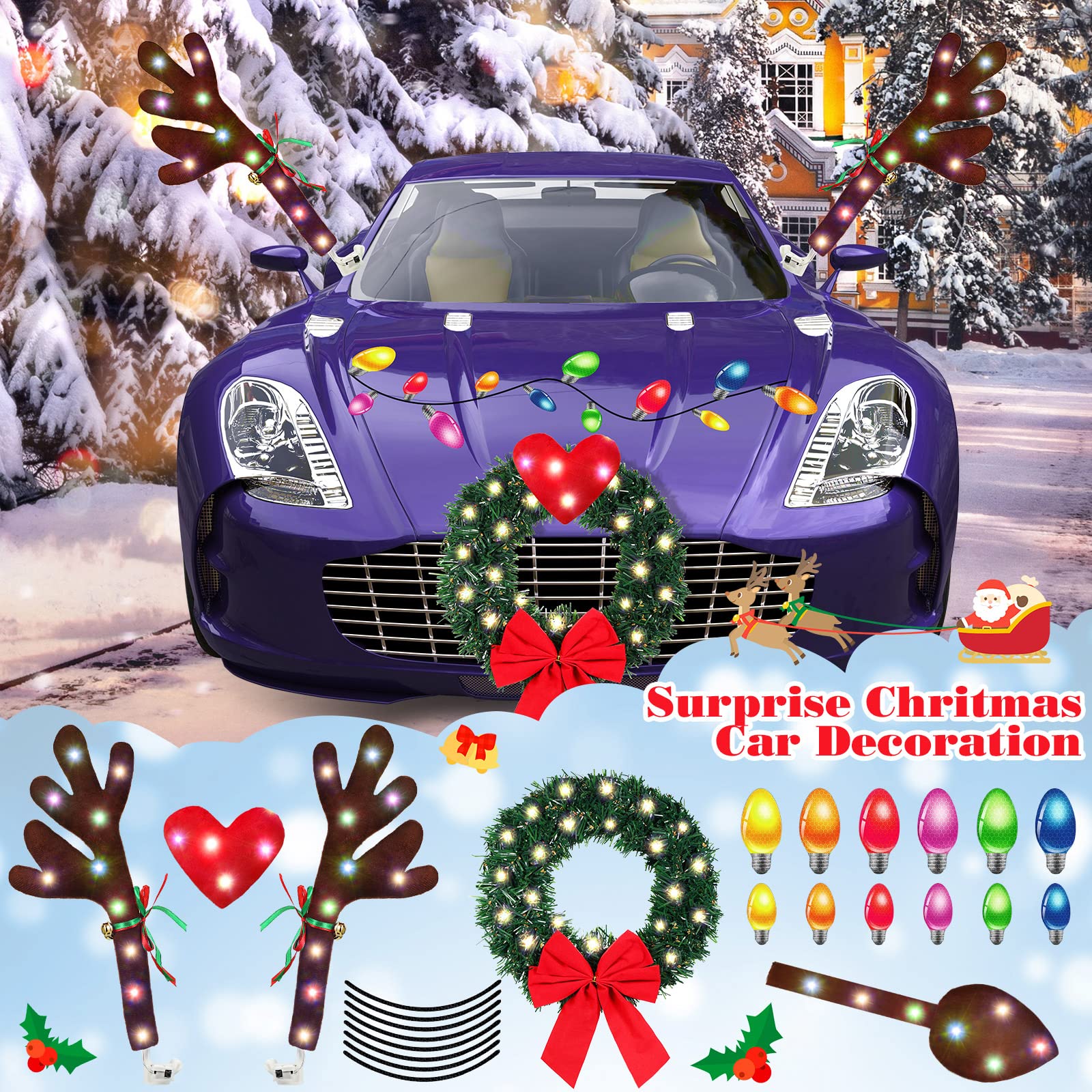 Accessoire Noël Voiture Lumineux Bedetter Voiture Renne, Kit De Voiture Avec Lumières LED, Kit Accessoire Fêtes Voiture Amusant Décoration Voiture combi père noel lumineux|Eclairage design - ARUM A avec de la lumière - Décoration de voiture en bois de renne à LED... Seul le contenu de l'emballage ci-dessus, les autres produits ne sont pas inclus. En raison des différences d'éclairage et d'affichage entre les écrans, la couleur réelle de l'article peut être légèrement différente de celle de la photo. La taille de l'article peut varier de +/- 1 à 3 cm. Xtahdge Couleur : marron., Matériau : peluche. Large application : ces décorations d'accessoires extérieurs de voiture de Noël une large gamme d'applications, agréables pour presque les types de véhicules, voitures, camions, SUV et plus encore, veuillez ne pas les utiliser si votre voiture est équipée d'un pare-soleil ou d'un déflecteur, ne convient pas aux pour des de sécurité Convient pour Noël : le kit de renne automatique présente des éléments de Noël classiques, y compris la queue , les bois et le nez rouge, attrayants et colorés, un design simple et élégant, peut ajouter un look à votre voiture, attirer l'attention et faire ressortir votre voiture des autres voitures, qui crée un Noël heureux et chaleureux pour vous et les autres. Design d'éclairage : le kit de rennes pour voiture avec lumières LED est disponible en 3 modes d'éclairage, respectivement flash , flash lent et allumage constant, qui vous permet de choisir que vous voulez, également facile à allumer ou à éteindre. 14 solutions d'éclairage intérieur et sous-lumineux pour faire...