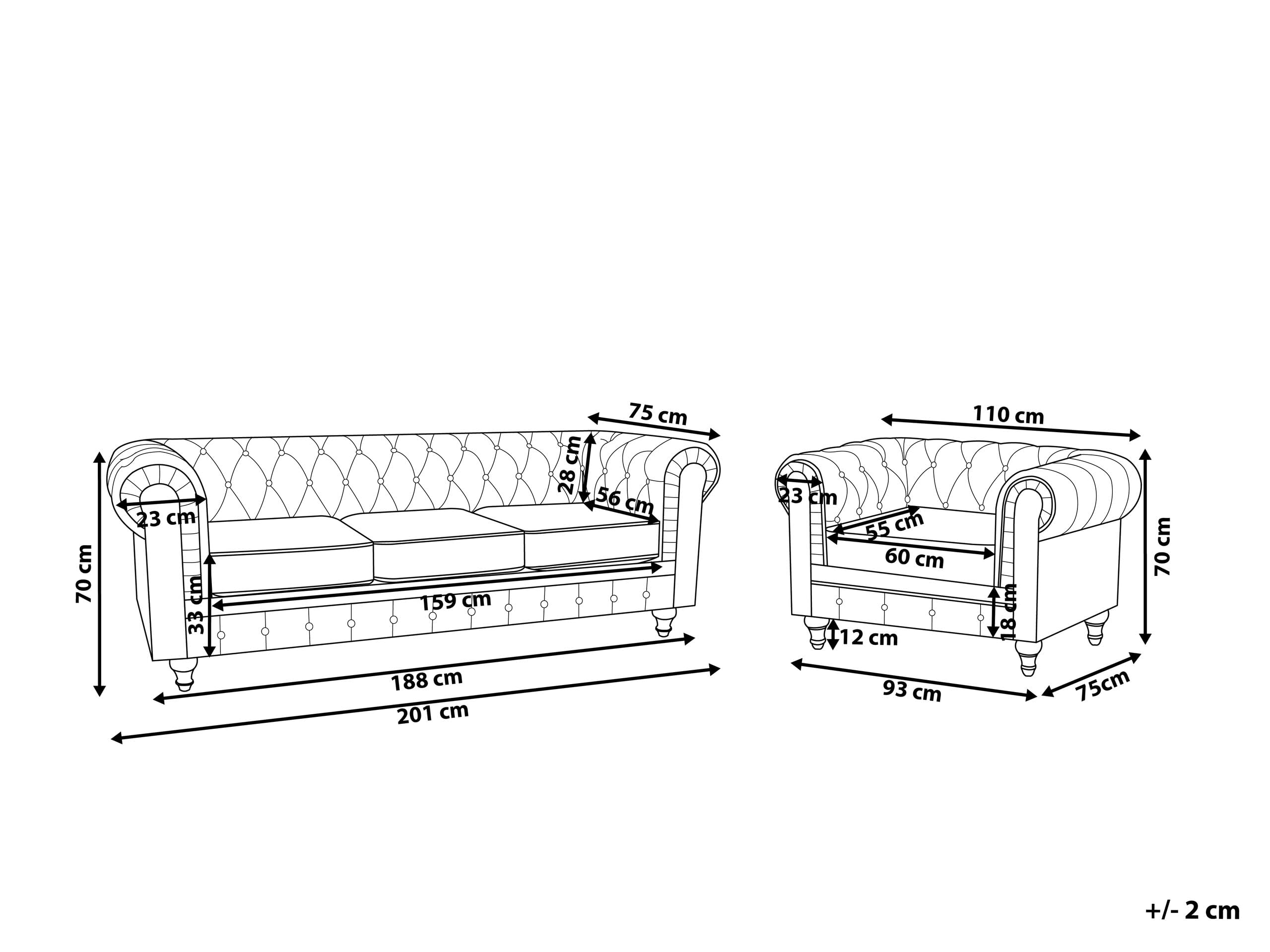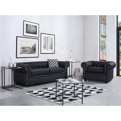 Ensemble Canapé et Fauteuil en Cuir Noir Dossier Ensemble Canapé et Fauteuil en Cuir Noir Dossier à Points Diamant Chesterfield. 1169,99 €*. logo. 0,00 €. -39... Cette pièce traditionnelle anglaise est facile d'entretien et s'adapte parfaitement à tout type de décoration. Construction du siège : ressorts sinueux. Informations complémentaires : toutes les surfaces de contact sont recouvertes de cuir véritable. Densité de la mousse d'assise : 24 kg/m3., Peut accueillir jusqu'à 4 personnes. Caractérisé par une silhouette carrée avec de larges bras volutés, cet ensemble de canapé présente le style emblématique Chesterfield qui s'adapte à tout intérieur moderne ou traditionnel. Les autres pièces sont fabriquées en cuir synthétique de qualité supérieure. Canapé chesterfield 3 places et un fauteuil 100% cuir Marron BRENTON Épaisseur du siège : 12 cm. Détails : Type de produit : canapé Chesterfield., Style : glamour. Canapé Chesterfield 2 Places Fauteuil En Cuir Beige Dossier à Points Diamant Style Classique Chesterfield 4260580933624 Canapé Chesterfield Cuir Noir Les coussins de siège disposent d'une housse amovible qui se traduit par un nettoyage facile sans vous soucier des taches. Matériau principal : cuir. Recouvert de cuir magnifique dans une nuance luxueuse de noir, les sièges présentent un capitonnage classique en forme de bouton de diamant. Recouvert de cuir magnifique dans une nuance luxueuse de noir, les sièges présentent un capitonnage classique en forme de bouton de diamant. Cette pièce traditionnelle anglaise est facile d'entretien et s'adapte parfaitement à tout type de décoration Poids maximal supporté par personne : 150 kg. Style de bras : panneau roulé. Surveillez les enfants et les animaux domestiques pour éviter les risques de piégeage. L'offre comprend : 1 canapé 3 places, 1 fauteuil. Matériau supplémentaire : bois de chêne. Avertissement De Sûreté Toutes les surfaces en mousse et tapissées répondent aux normes d'inflammabilité.