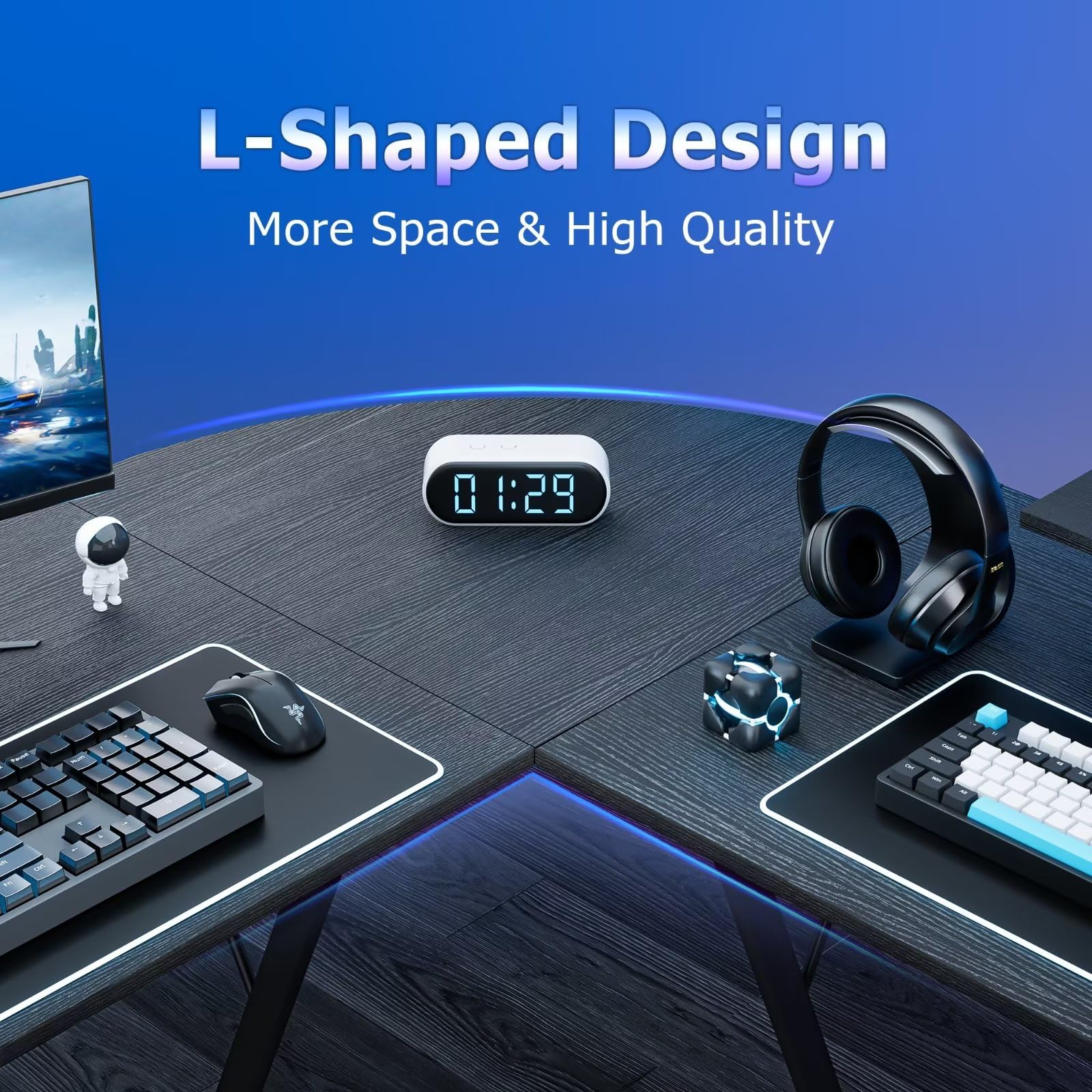 BEXEVUE Bureau d'angle avec LED Prise de Courant - 120x70 cm | FindTheDeal Débarrassez-vous des câbles gênants et gardez votre bureau bien rangé. Bureau D Angle Avec Rangement Bestier Bureau D'angle En Forme De L Avec Prises Et LED – Bureau Bureau Tiroirs Tissu Bande LED La longueur du câble est de 1,5 m. Tube Led Neon Led 150cm 45W Réglette LED Étanche IP66 Néon Tube LED... Meuble TV 150 cm - 2 portes en rotin et 2 tiroirs - étagères réglables... La large surface de travail de la table d'angle offre suffisamment d'espace pour vos objets. Le bureau BEXEVUE se caractérise par un design ultra fin et léger tout en offrant suffisamment d'espace de rangement. Garantie de service : lorsque vous achetez chez BEXEVUE nous vous fournirons un service professionnel avant et après l'achat et vous pouvez également bénéficier de notre garantie sans risque de 30 jours. Design moderne avec multiprise : le bureau moderne en forme de L de BEXEVUE combine un métal rigide avec des panneaux MDF, 1 multiprise USB et 1 multiprise de type C, créant ainsi un look moderne, épuré et élégant. Conçu avec des coussinets de pieds réglables à différentes hauteurs pour maintenir le bureau stable sur les sols inégaux et les tapis. BEXEVUE Bureau d'angle moderne en forme de L avec prises LED, 150 cm, 2 tiroirs, étagères réversibles, grand support pour écran, table de jeu, étude, travail, maison, chambre à coucher