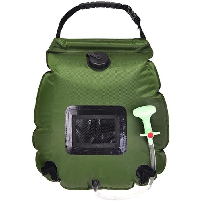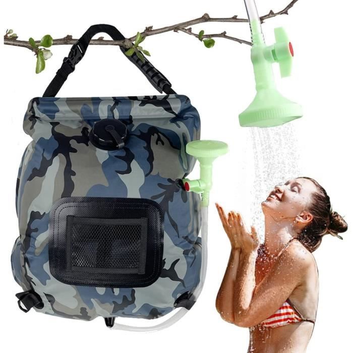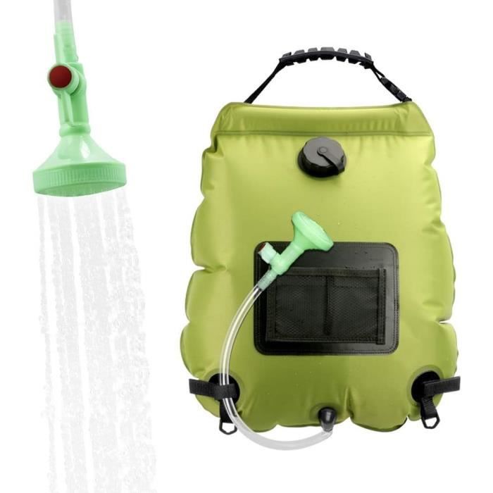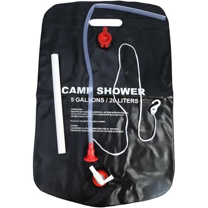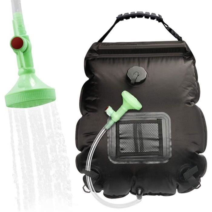 équipement Plein Air Sans électricité Douche Solaire Bestway 20 L Avec Barre De Douche Pommeau Et Socle Sac De Douche Solaire Facile à transporter, rapide à installer et grande capacité, vous pouvez prendre une douche chaude tous les jours lorsque vous campez à l'extérieur Vente chaude Camping sac de douche 5 gallons/20 litres sac de douche Portable po Facile à utiliser et flexible : avec le tuyau flexible, le pommeau de douche confortable et le système de suspension stable, la douche solaire peut être facilement installée en quelques minutes et accrochée aux arbres, aux tentes ou à d'autres endroits appropriés. Progrès-Yuragim Sac de Douche Solaire Camping Sac de Douche Solaire 20L... L'application est un jeu d'enfant, de sorte que vous êtes prêt à l'emploi. Ainsi, vous pouvez profiter de douches rafraîchissantes en plein air à tout moment. Chauffage efficace en peu de temps : grâce au matériau en PVC noir, l'eau est chauffée à 45 °C en seulement 2 à 3 heures, de sorte que vous pouvez toujours profiter d'une douche chaude et apaisante même lors de courtes excursions en plein air, sans source d'alimentation supplémentaire. Grande capacité pour une utilisation multiple : avec un volume généreux de 20 litres, cette douche de camping solaire offre suffisamment d'eau pour plusieurs douches, idéale pour les activités de plein air prolongées telles que le camping, les festivals ou les séjours à la plage.